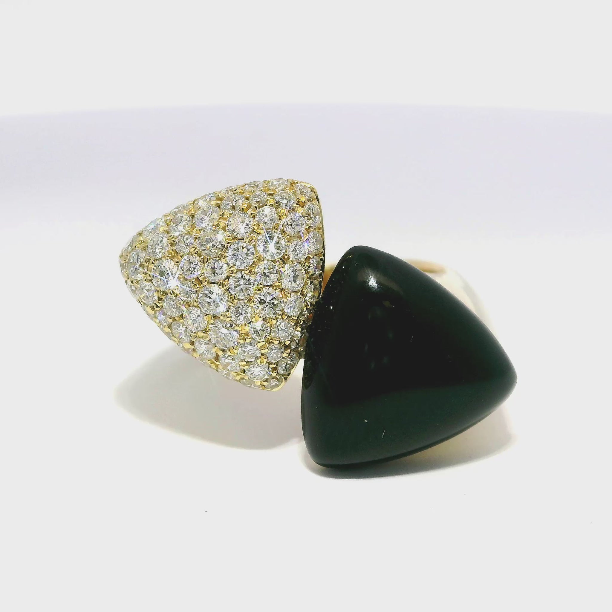 0.99ct Diamond Ring with Black Onyx 14k Yellow Gold