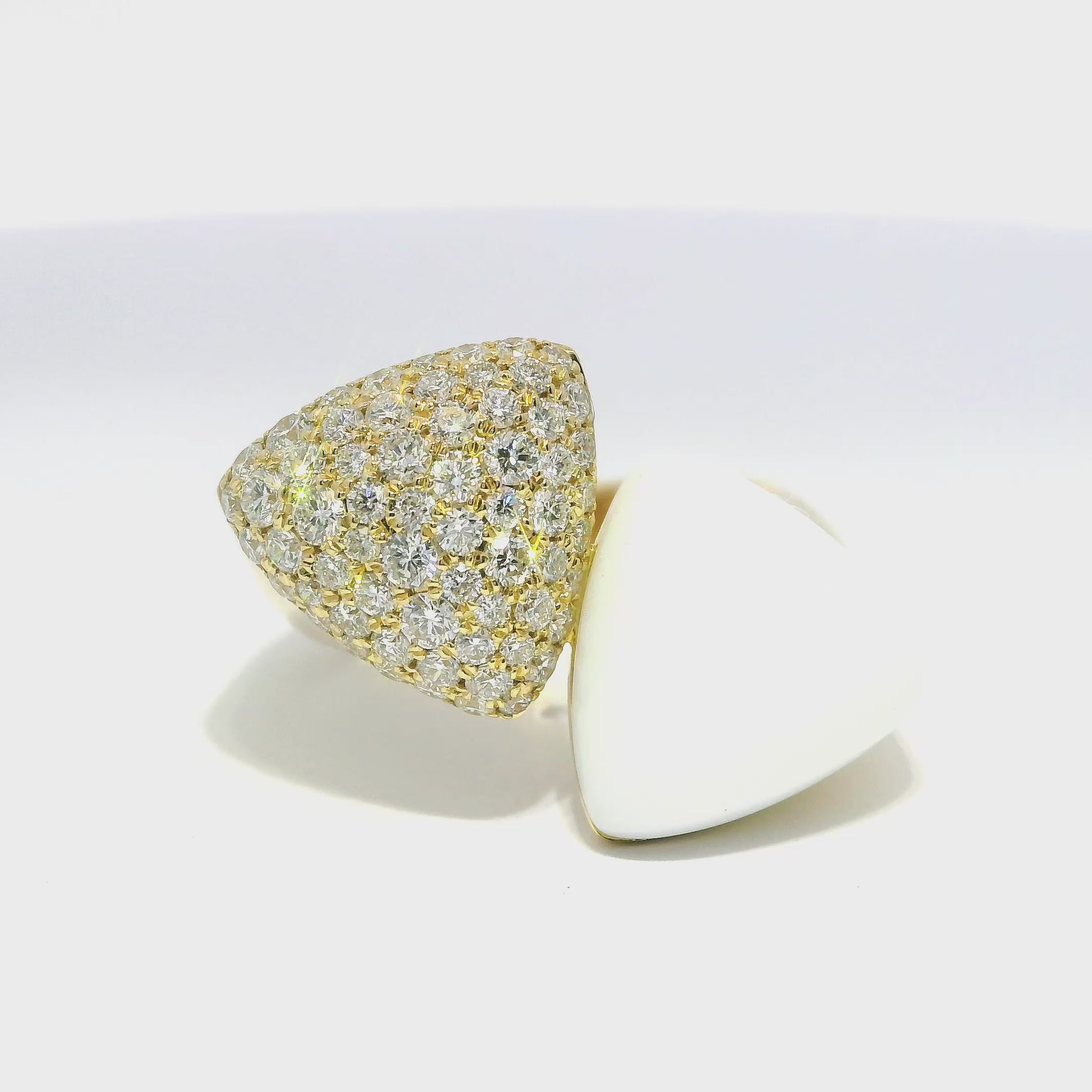 0.99CT Diamond Ring with White Agate 14k Yellow Gold
