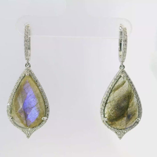 1.10CT Diamond with Faceted Labradorite Stone 14k White Gold Earring