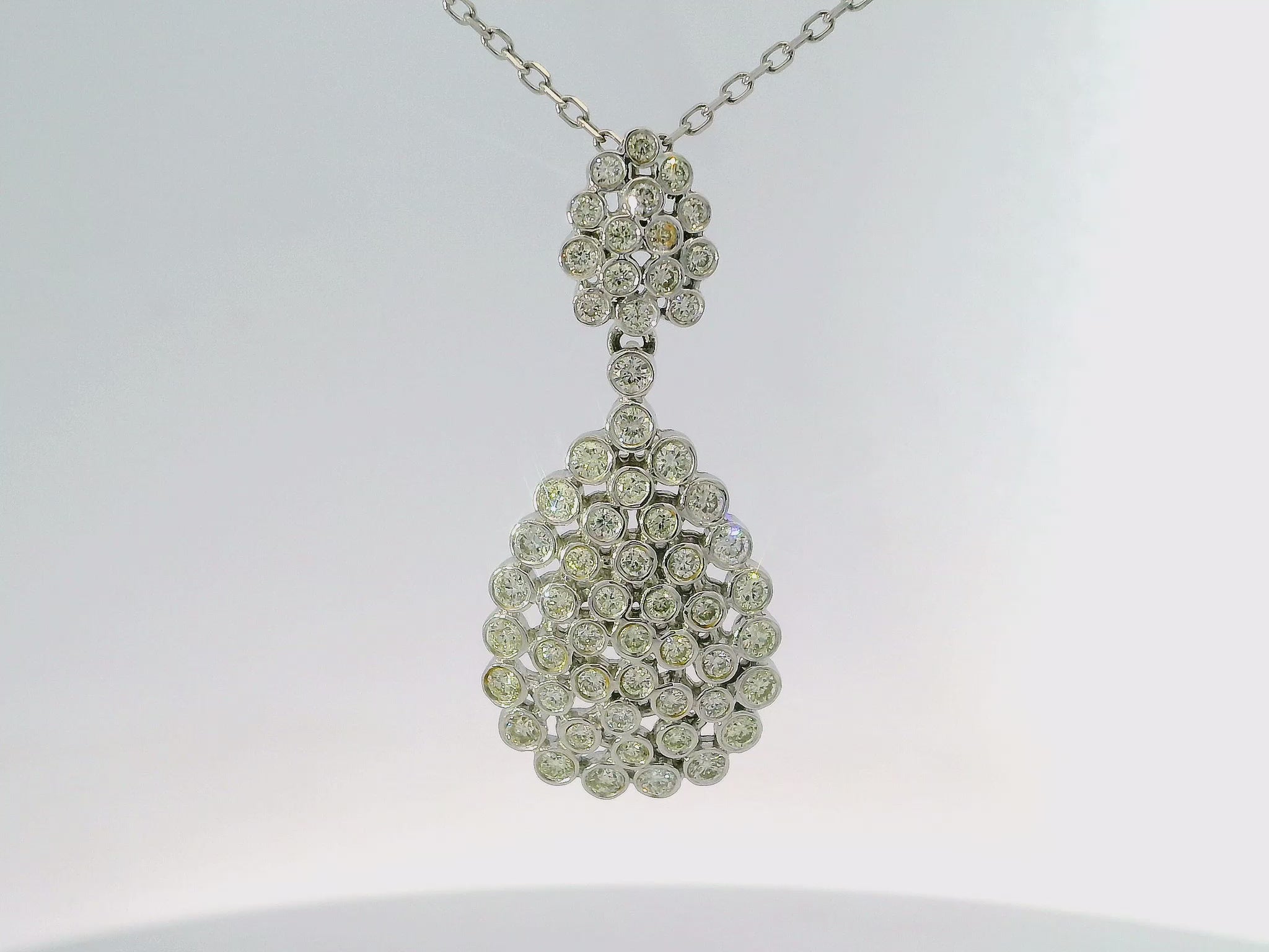 This 1.17CT diamond pendant is crafted from 14k white gold, making it a luxurious and timeless piece of jewelry. With its stunning diamond and high-quality gold, this pendant is the perfect accessory for any formal or special occasion. Elevate your style and make a statement with this exquisite pendant.