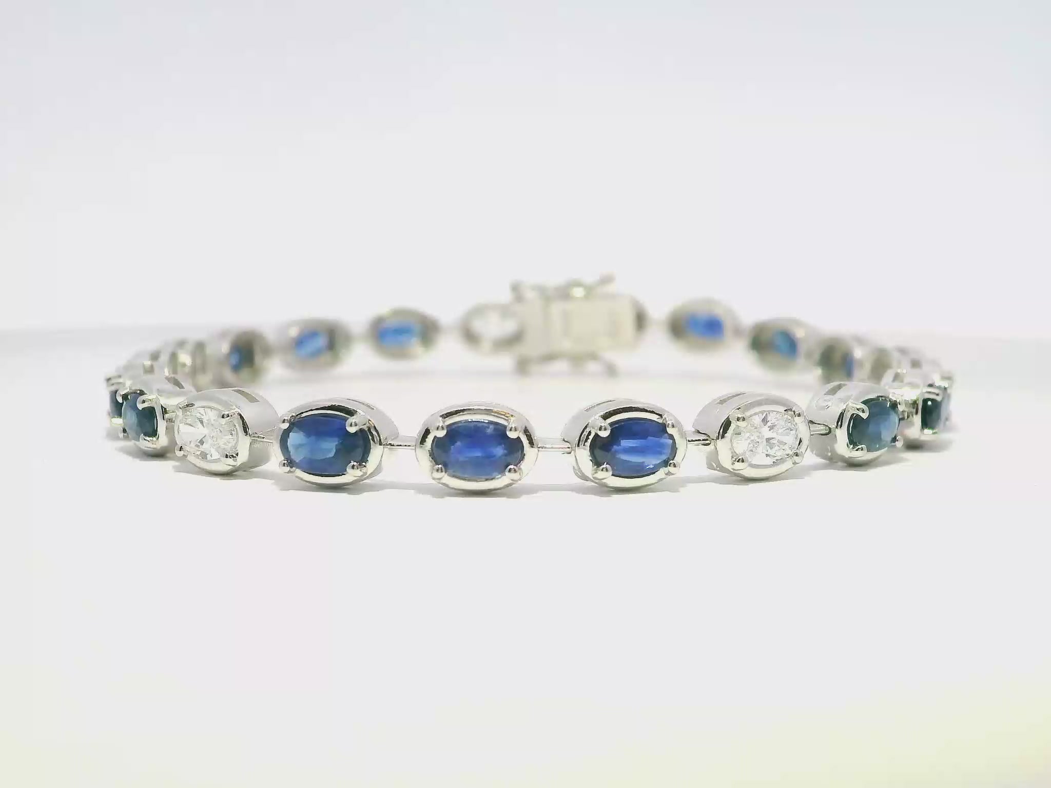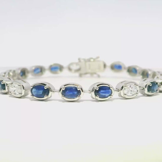 1.17CT Oval Lab Diamond 4.25CT Blue Sapphire 14K White Gold Bracelet