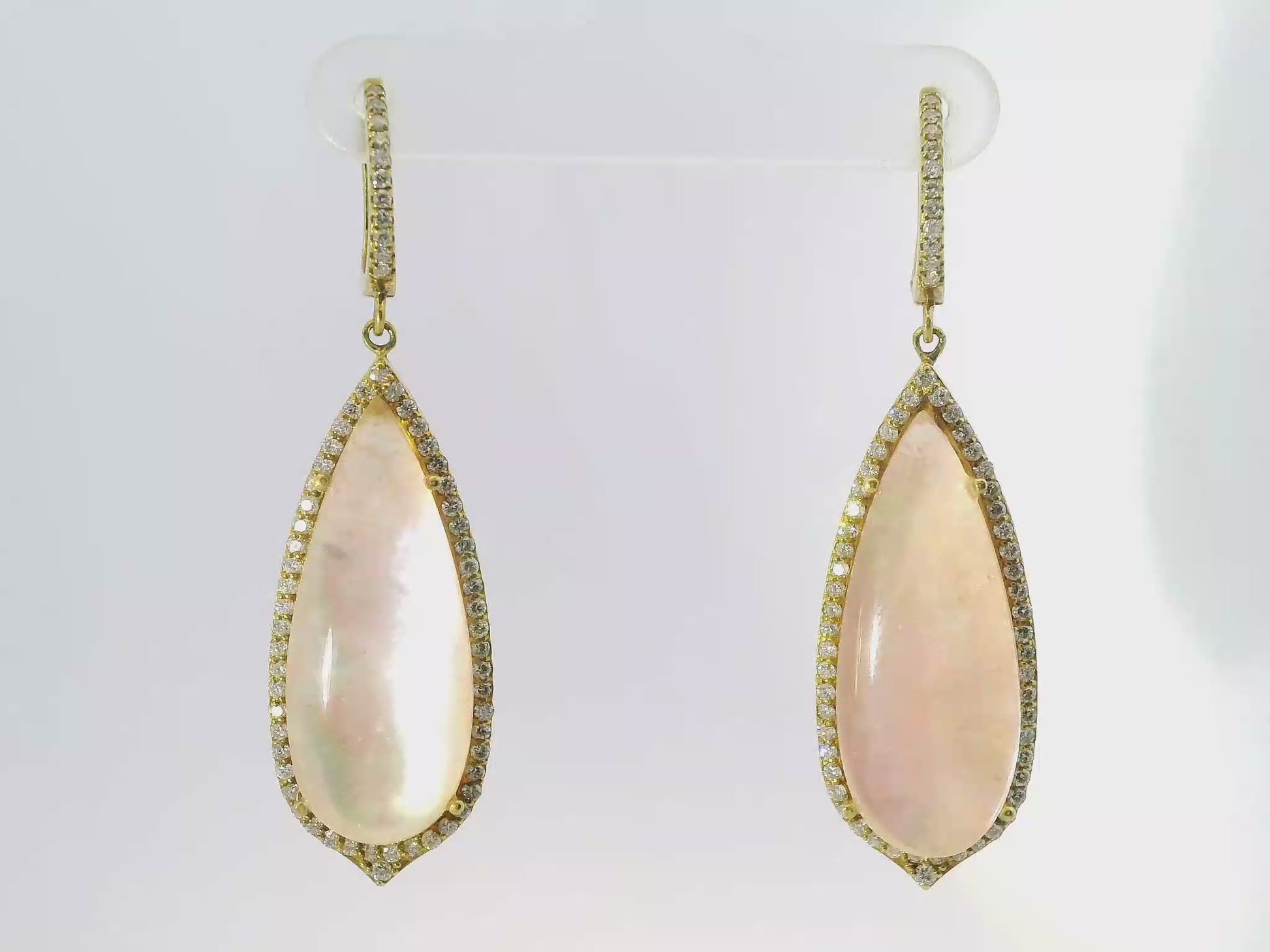 1.18CT Diamond with Pink Cabochon Stone 14k Yellow Gold Earring