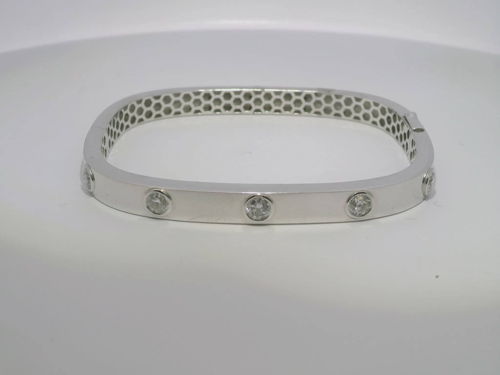 This stunning 1.19CT diamond bangle is expertly crafted from 14k white gold, elevating any outfit with its elegant and luxurious design. With a dazzling display of diamonds, it exudes class and sophistication. Perfect for any occasion, this bangle is a testament to your refined style.