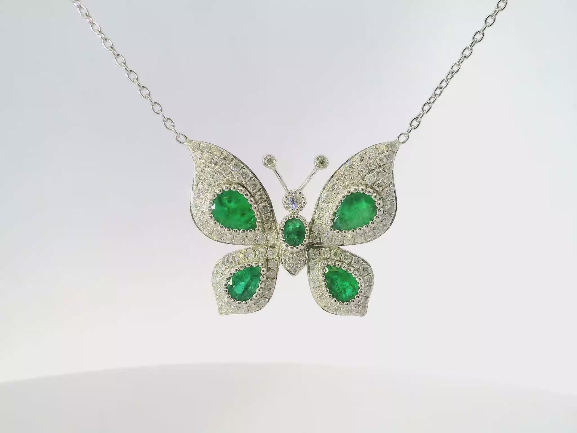 This exquisite piece features a 1.25-carat diamond paired with a 2.23-carat emerald, set in luxurious 18k white gold. The combination highlights the diamond’s brilliance alongside the emerald’s rich green hue, creating a sophisticated and timeless design. Crafted with precision, this jewelry offers both elegance and lasting value for discerning collectors.
