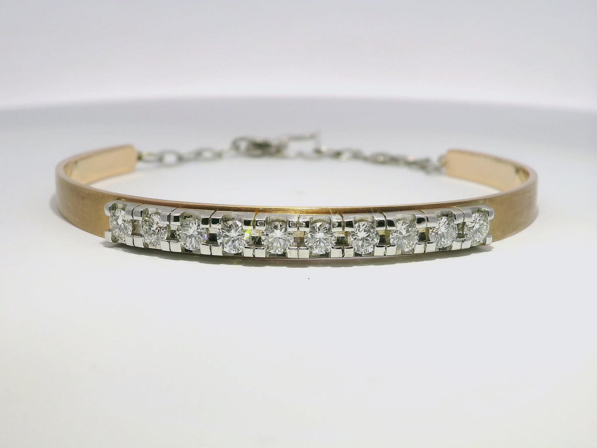 This elegant bangle features 1.35CT of brilliant diamonds set in 14k white gold. Expertly crafted and sophisticated, this piece adds a touch of luxury to any outfit. With its stunning sparkle and enduring quality, it's a timeless accessory for any jewelry collection.