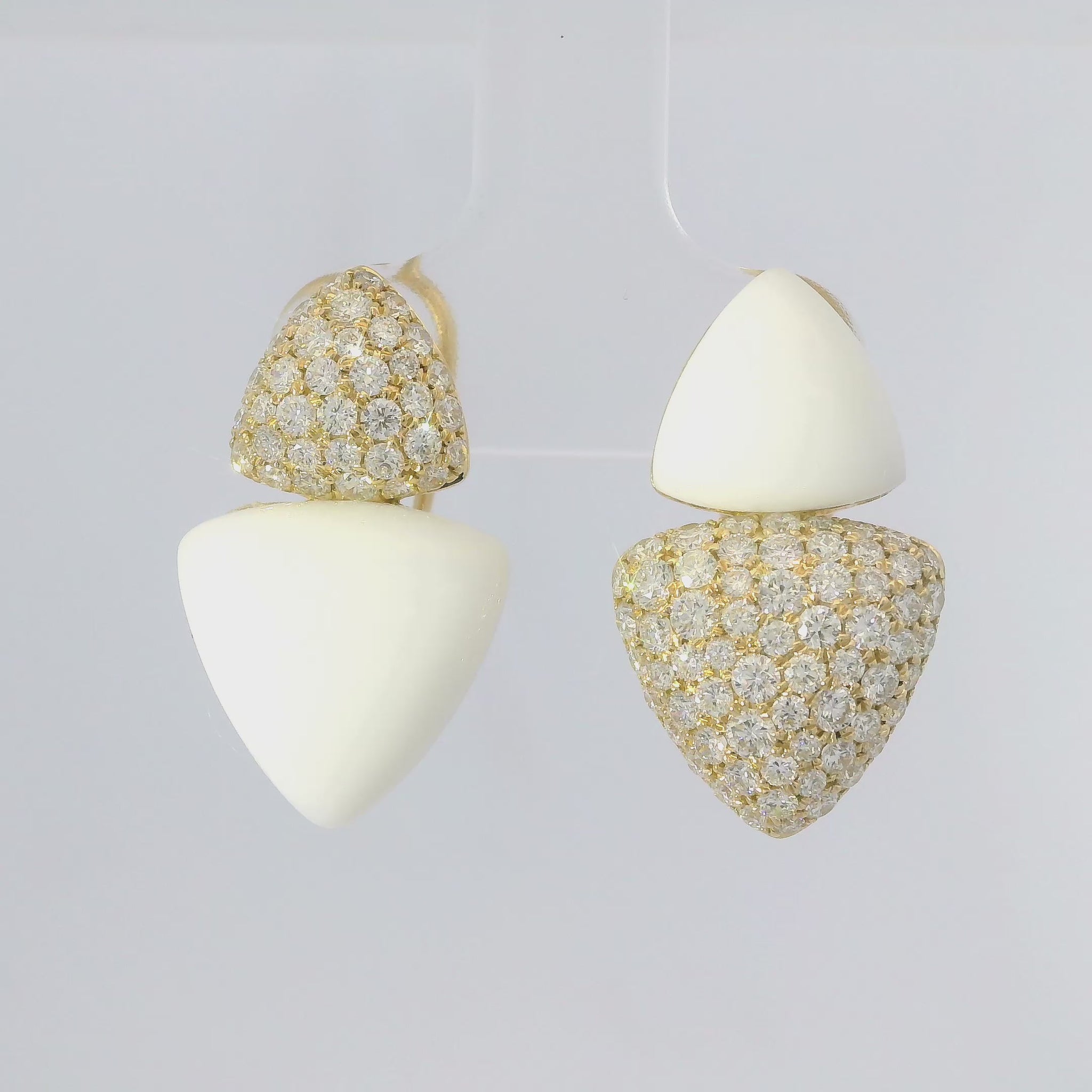1.50CT Diamond Earring with White Agate 14k Yellow Gold