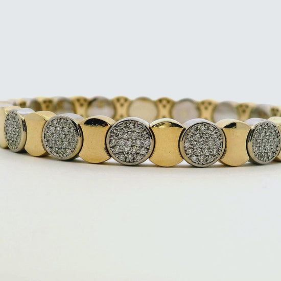 This high-quality 1.62CT diamond bangle, crafted from 14k yellow gold, exudes elegance and luxury. With a stunning diamond weight of 1.62CT, this bangle is a must-have accessory that will elevate any outfit. Its timeless design and durable materials make it a worthwhile investment for any jewelry collection.