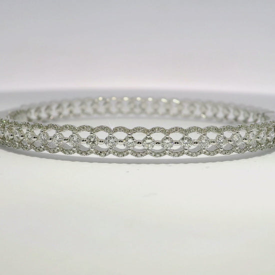 Expertly crafted with 1.65CT of sparkling diamonds set in 18k white gold, this diamond bangle exudes elegance and luxury. The perfect accessory for any special occasion, it will add a touch of sophistication to any outfit. Elevate your style with this exquisite piece of jewelry.