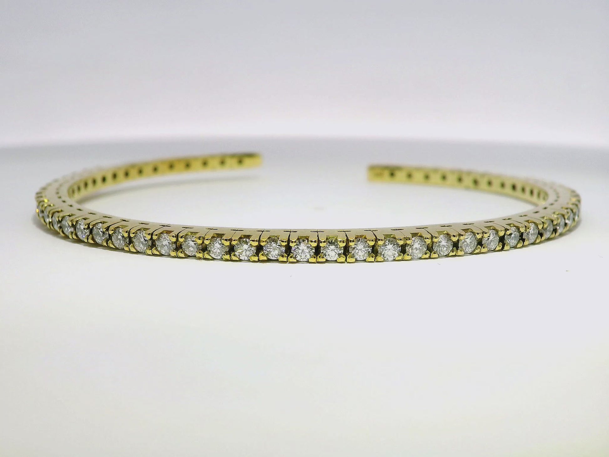 Experience the ultimate luxury with our 1.74CT Diamond Bangle in 14k White Gold. Featuring stunning 1.74 carat diamonds, this bangle exudes elegance and sophistication. Perfect for any occasion, it will elevate any outfit and make you feel like royalty. Treat yourself or a loved one to this timeless piece.