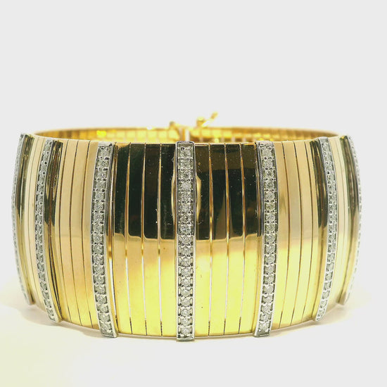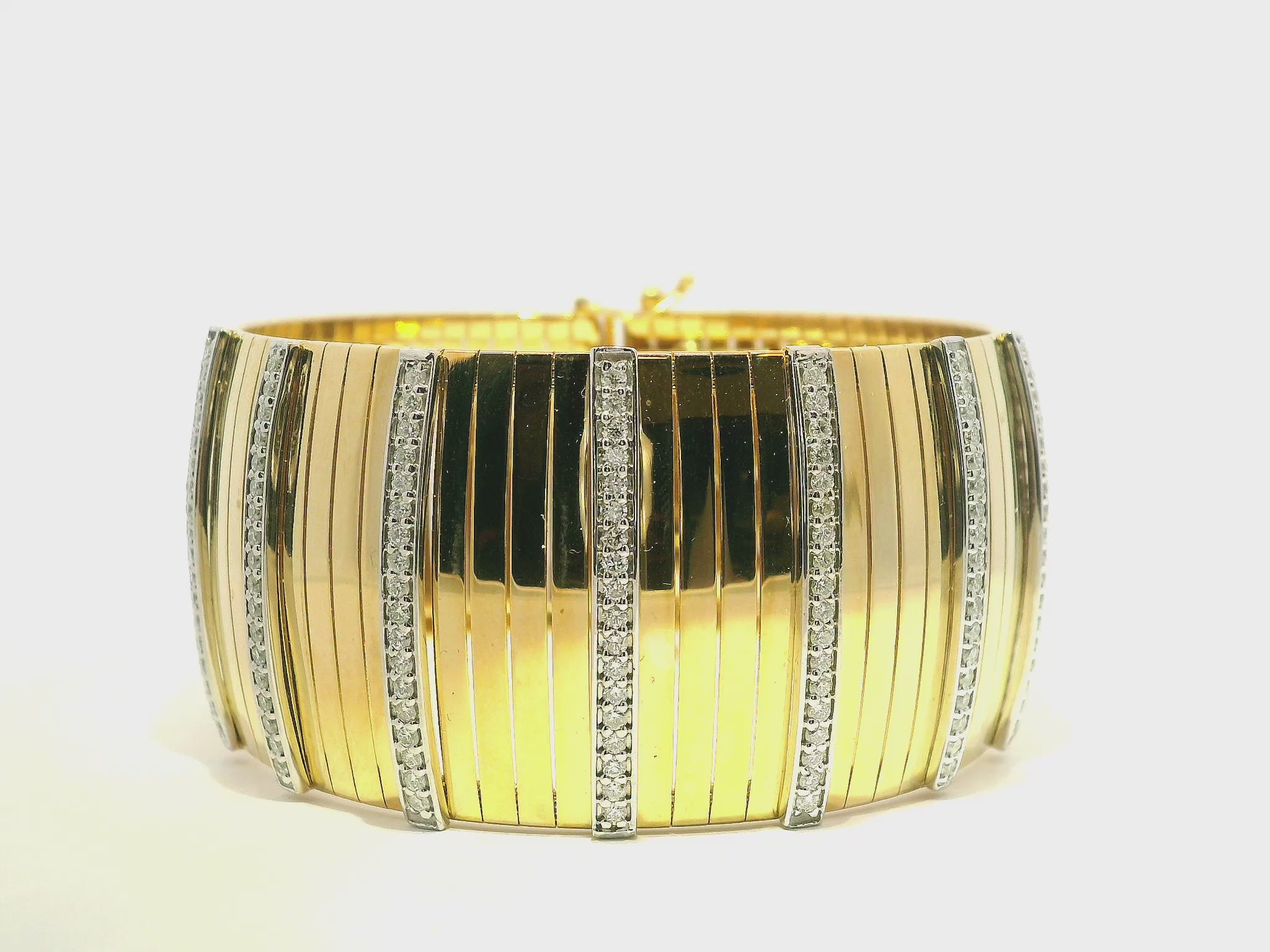 Elevate your jewelry collection with this exquisite 1.81CT Diamond Bangle crafted in luxurious 14k Yellow Gold. This sophisticated piece features meticulously set diamonds totaling 1.81 carats, creating a brilliant display of light and sparkle. The classic yellow gold setting enhances the diamonds' natural brilliance while providing durability and timeless appeal for both special occasions and everyday elegance.