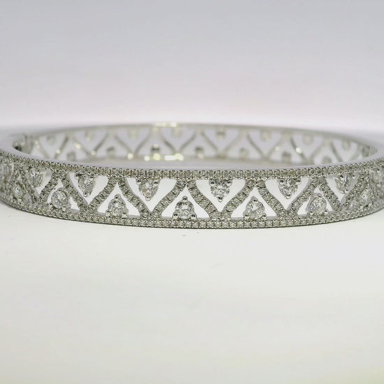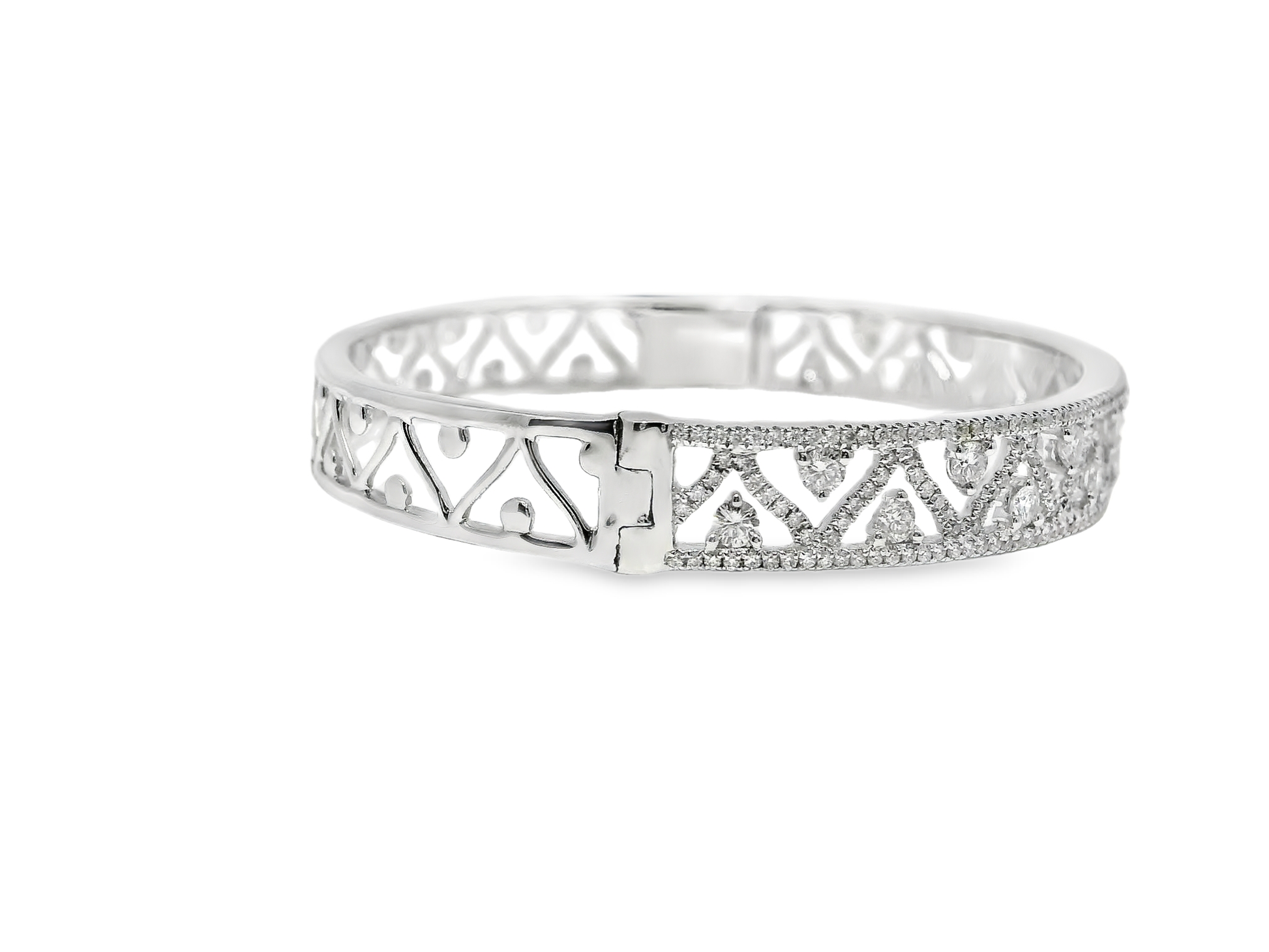 Discover the epitome of luxury with our 1.85CT Diamond Bangle in 18k White Gold. Adorned with sparkling diamonds, this bangle exudes elegance and sophistication. Show off your refined taste with this statement piece that is crafted with quality and precision. Elevate any outfit with this stunning accessory.