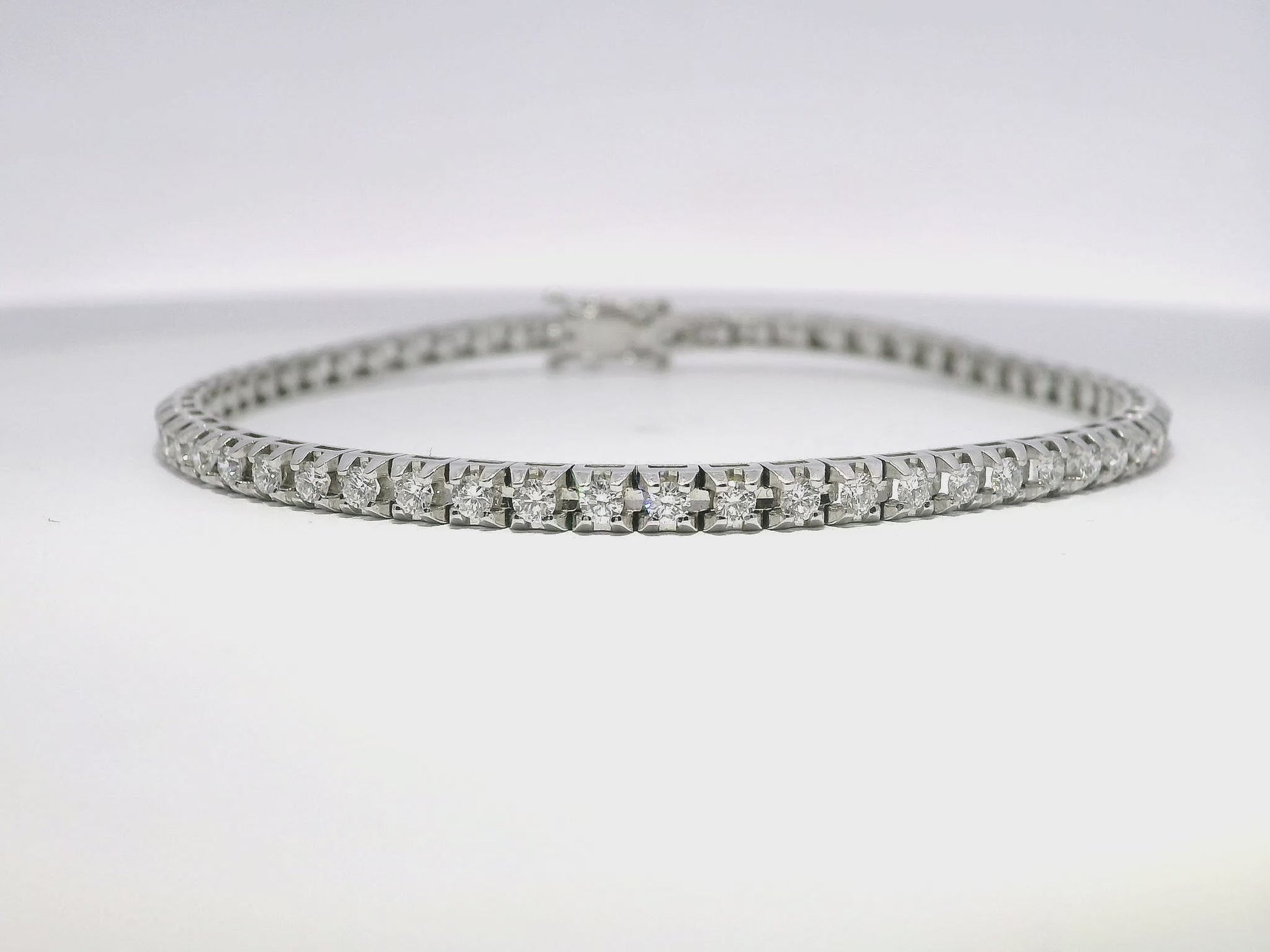 Elevate your collection with this exquisite 2.00CT Diamond Bracelet crafted in premium 18k white gold. The meticulously set diamonds create a brilliant display of light, while the durable white gold setting ensures lasting elegance. This sophisticated piece transitions seamlessly from formal