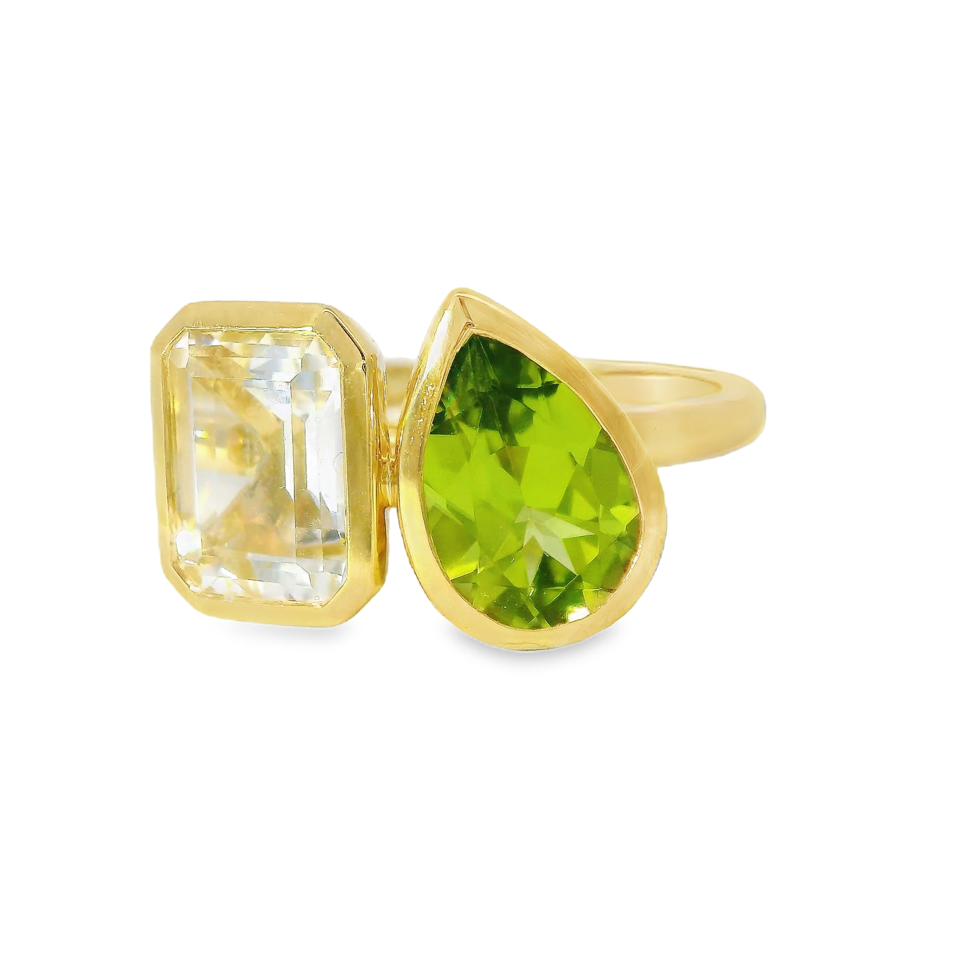 2.05CT White Topaz ands 1.39CT Green Peridot Ring 14K Yellow Gold