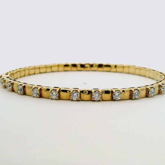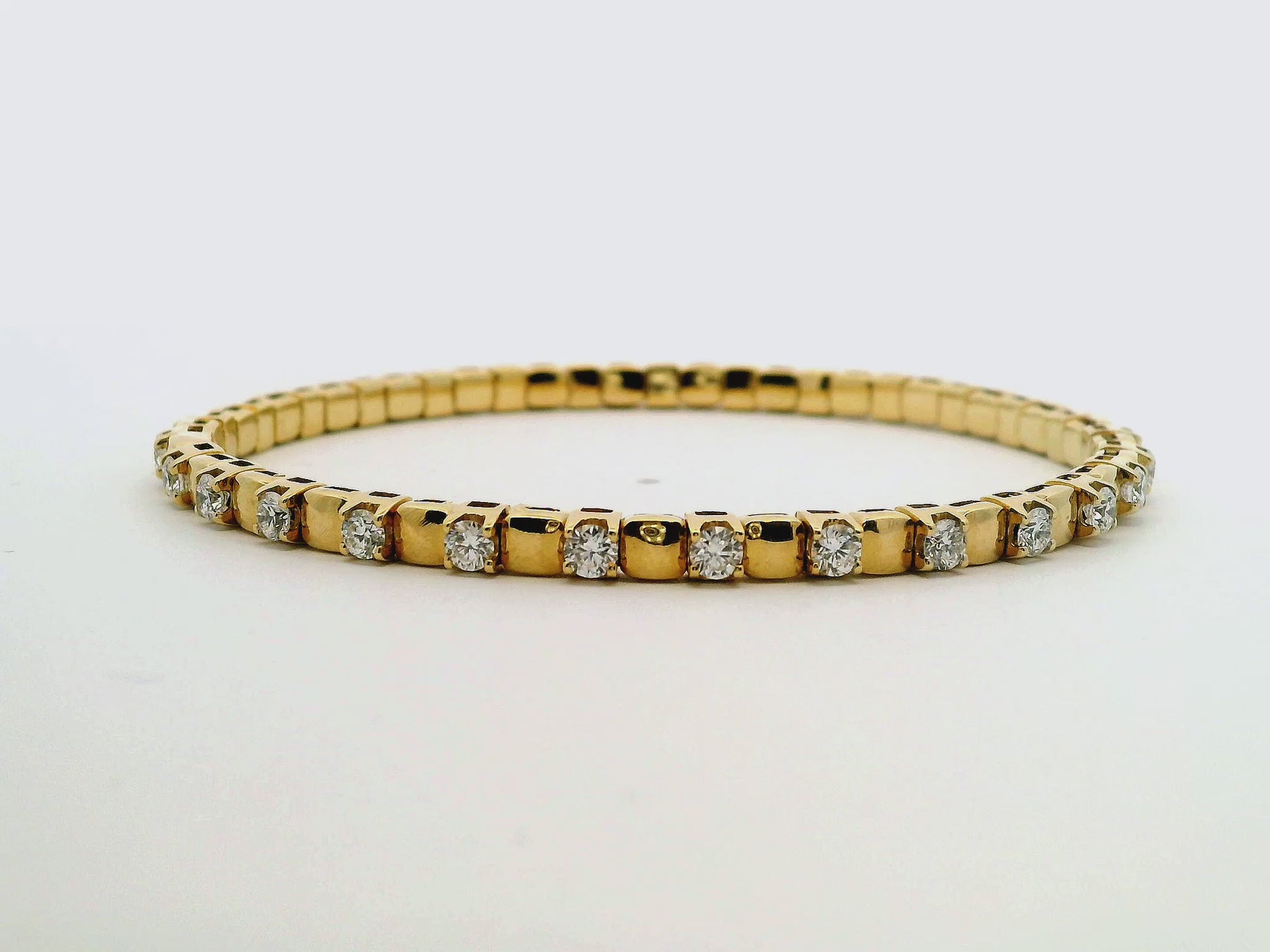 Featuring a stunning 2.11 carat diamond, this 18k yellow gold bangle is a luxurious statement piece. With its elegant design and high-quality materials, this bangle exudes sophistication and adds a touch of glamour to any outfit. Upgrade your jewelry collection with this exquisite diamond bangle.