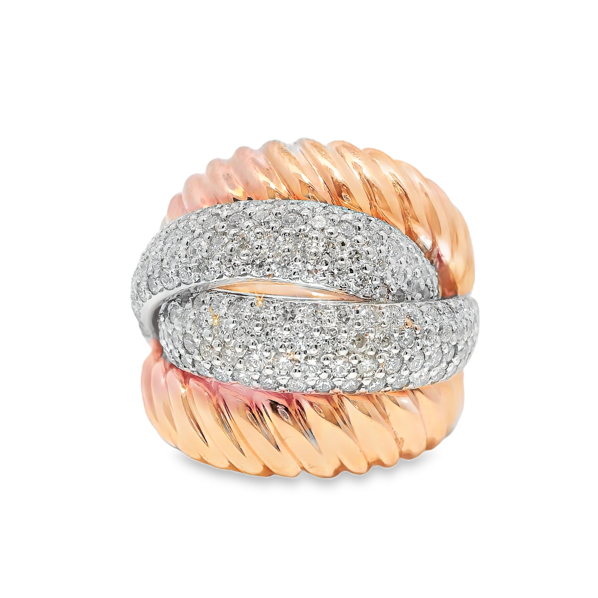 This exquisite 2.13-carat diamond ring is expertly crafted in 14k rose gold, combining timeless elegance with modern sophistication. The warm hue of the rose gold enhances the brilliance of the diamonds, creating a captivating sparkle. Perfect for marking special occasions or elevating everyday style, this ring offers both durability and refined beauty for discerning jewelry enthusiasts.
