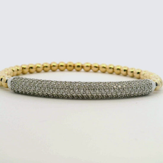 Expertly crafted with 2.17CT diamonds, this stretch bangle in 14k yellow gold offers both luxury and versatility. The shimmering diamonds add a touch of sparkle, while the stretch design allows for a comfortable and secure fit. Perfect for any occasion, this bangle is a timeless addition to any jewelry collection.