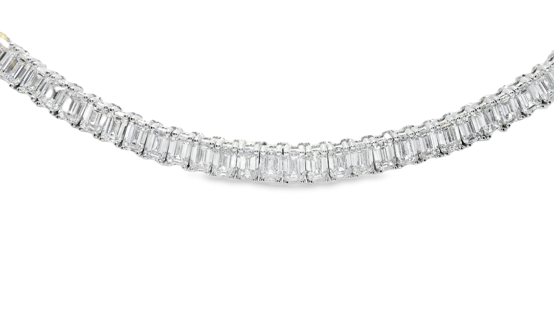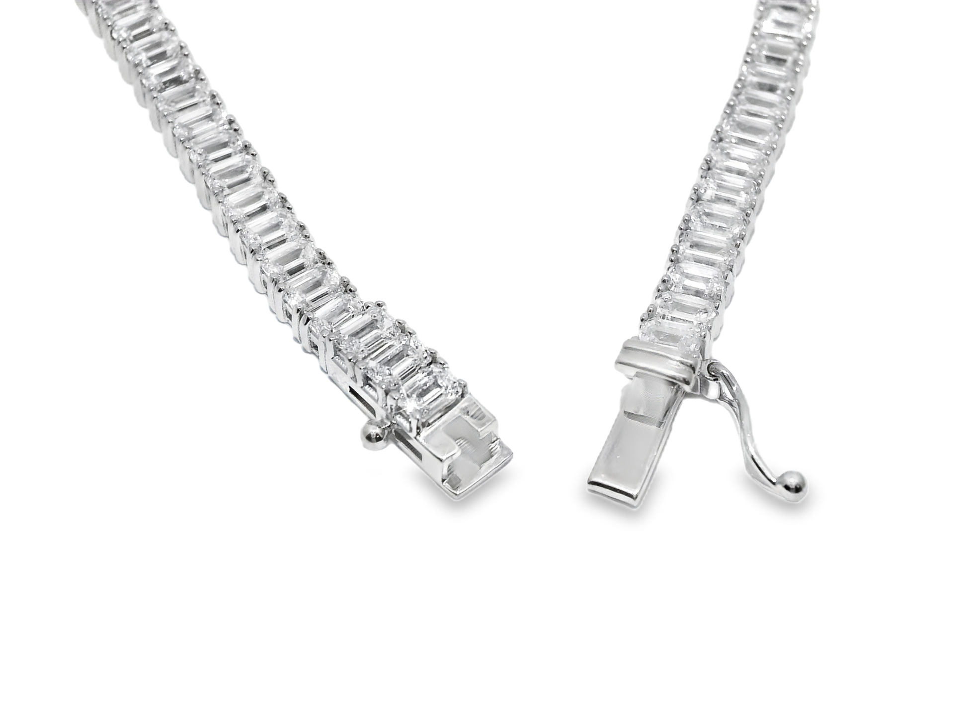 22.13CT Lab Diamond Emerald Cut Necklace 14k White Gold