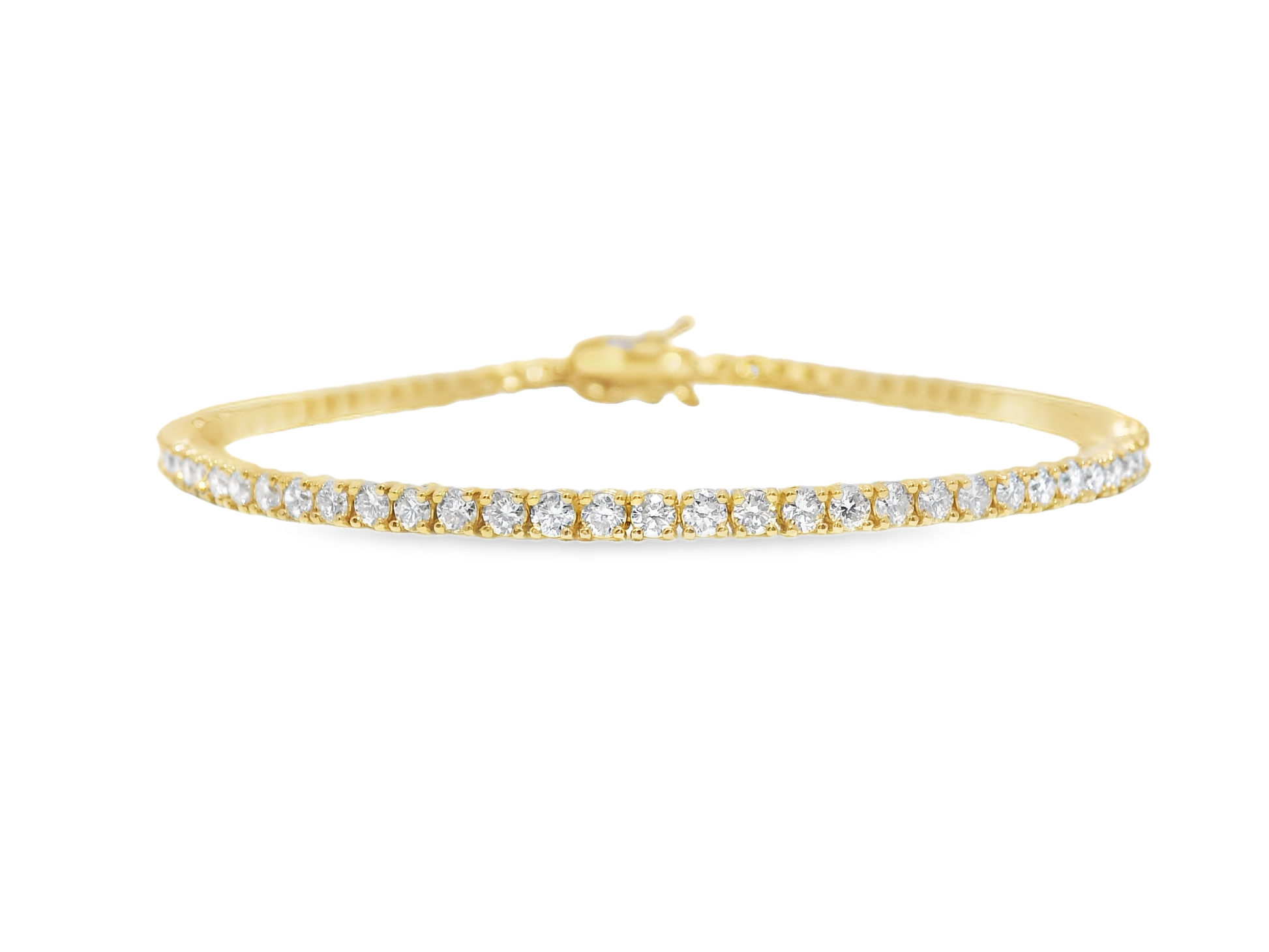 Display timeless elegance with this 2.67CT diamond bracelet in 14k yellow gold. The brilliant diamonds add up to a total of 2.67 carats, providing a stunning sparkle to any outfit. The 14k yellow gold setting adds a touch of luxury, making it the perfect accessory for any occasion.
