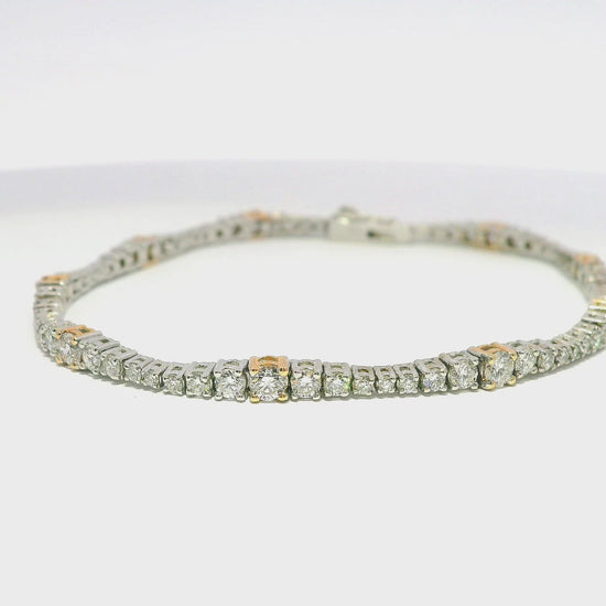 Elevate your collection with this exquisite 2.69CT Diamond Bracelet crafted in 18k two-tone gold. The harmonious blend of gold tones creates a sophisticated canvas that highlights the brilliant diamonds. Precision-set stones totaling 2.69 carats deliver