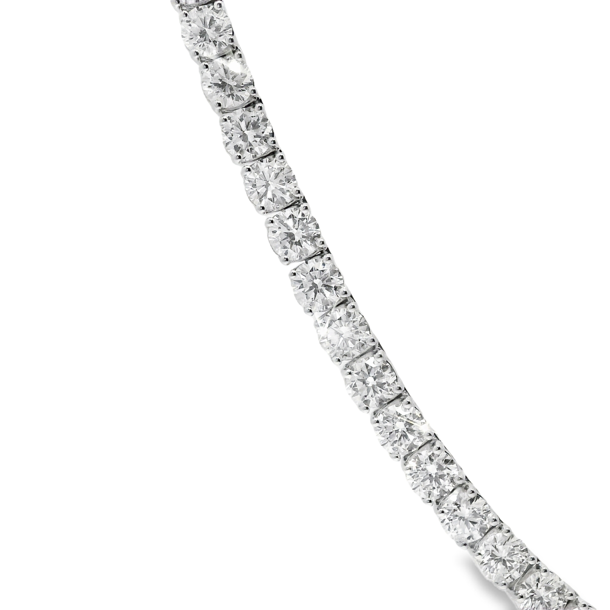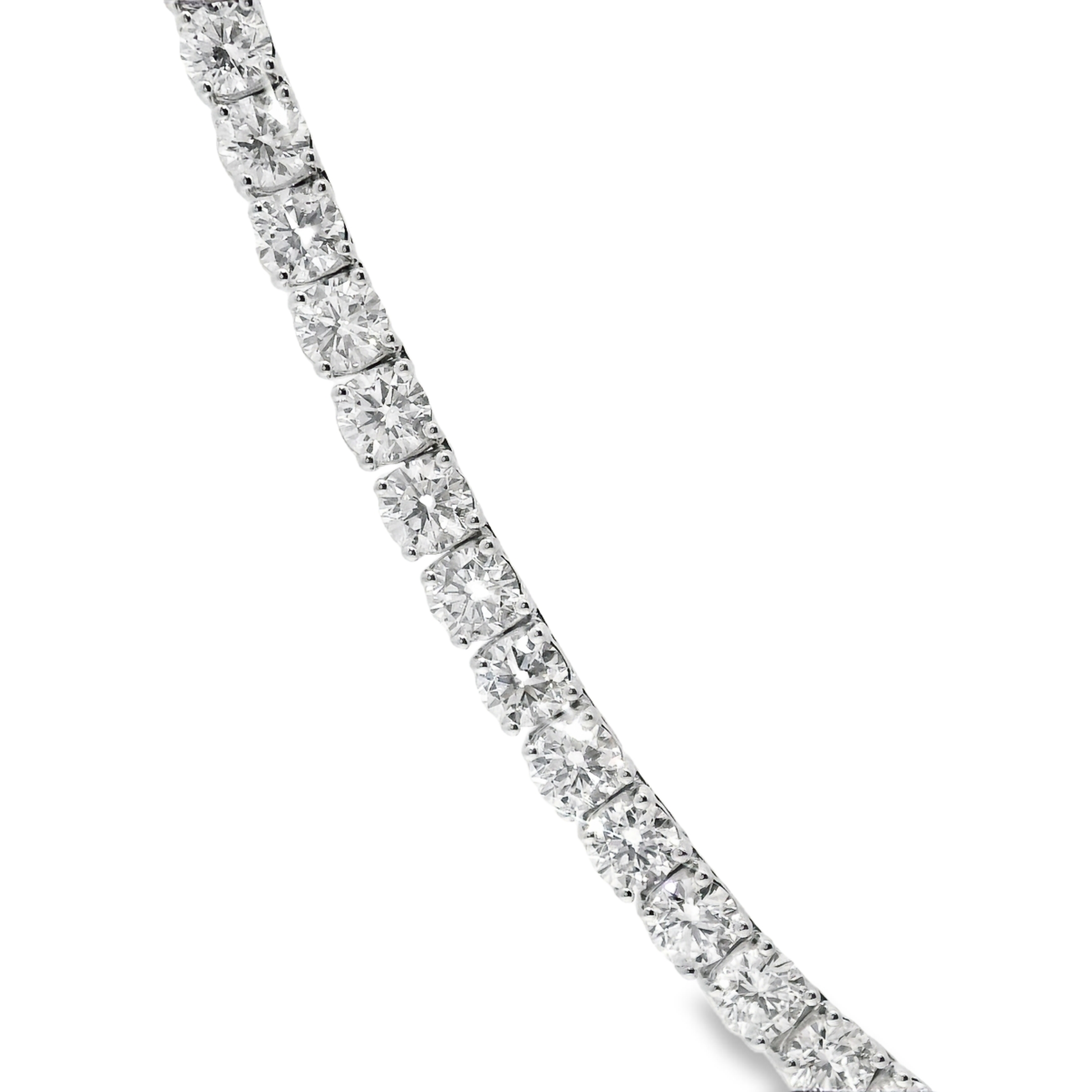 Experience luxury with this 27.54CT Lab Diamond Tennis Necklace crafted in radiant 14K white gold. Featuring brilliant lab-grown diamonds, it offers exquisite sparkle while supporting ethical and sustainable practices. This necklace adds timeless elegance and a refined touch to any outfit, making it an unforgettable statement piece for any occasion.