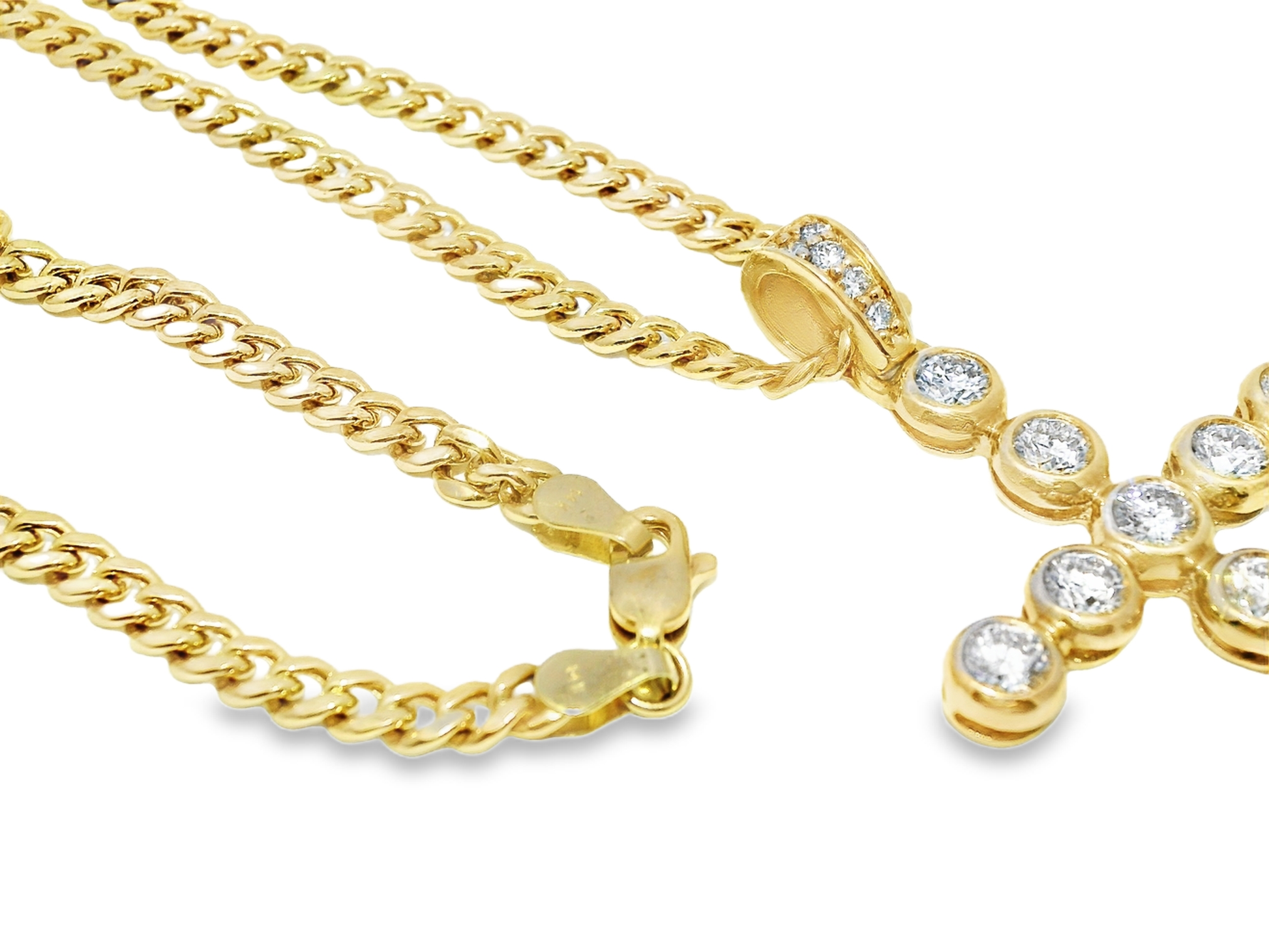 Expertly crafted with 2.79 carats of shimmering diamonds, this 14k yellow gold cross pendant is a symbol of faith and elegance. Its timeless design and superior quality make it a perfect addition to any jewelry collection. Elevate your style and showcase your devotion with this stunning diamond cross pendant.