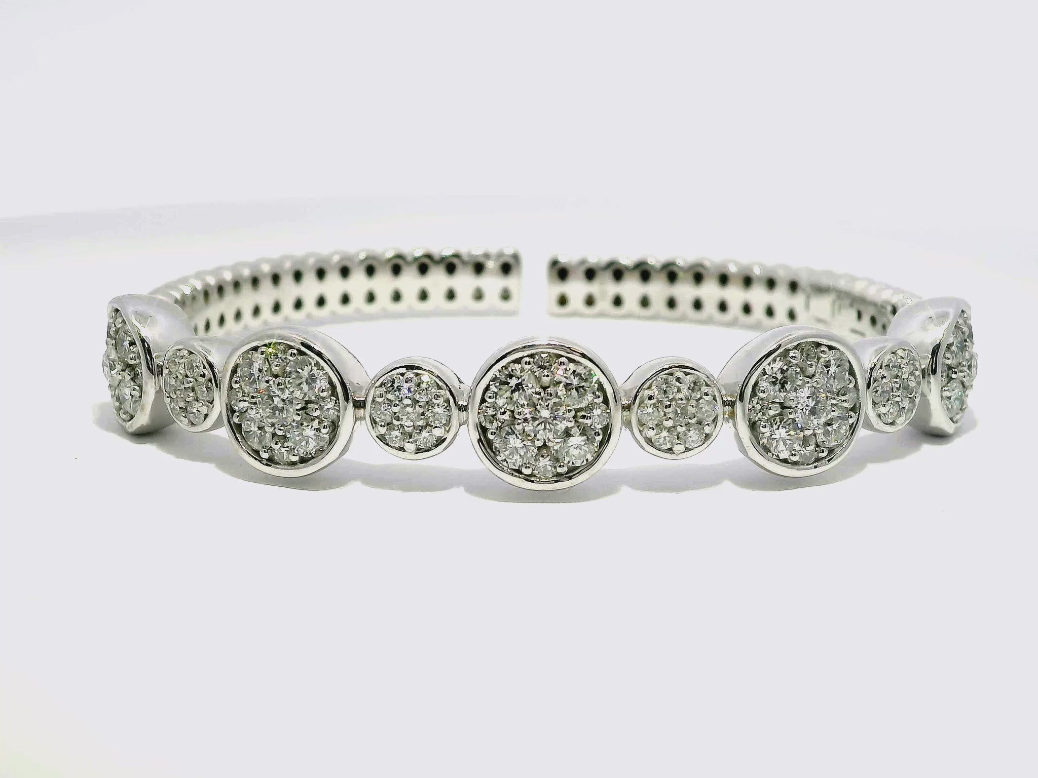 As a product expert in the jewelry industry, I can confidently assert that this 3.04CT diamond bangle in 14k white gold is a stunning and timeless addition to any collection. Crafted with a generous amount of sparkling diamonds, this bangle showcases the perfect balance of elegance and luxury.