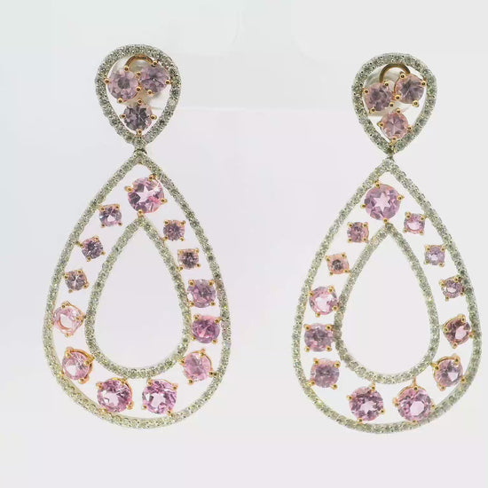 3.07CT Diamond with Pink Sapphire 14k White Gold Earring