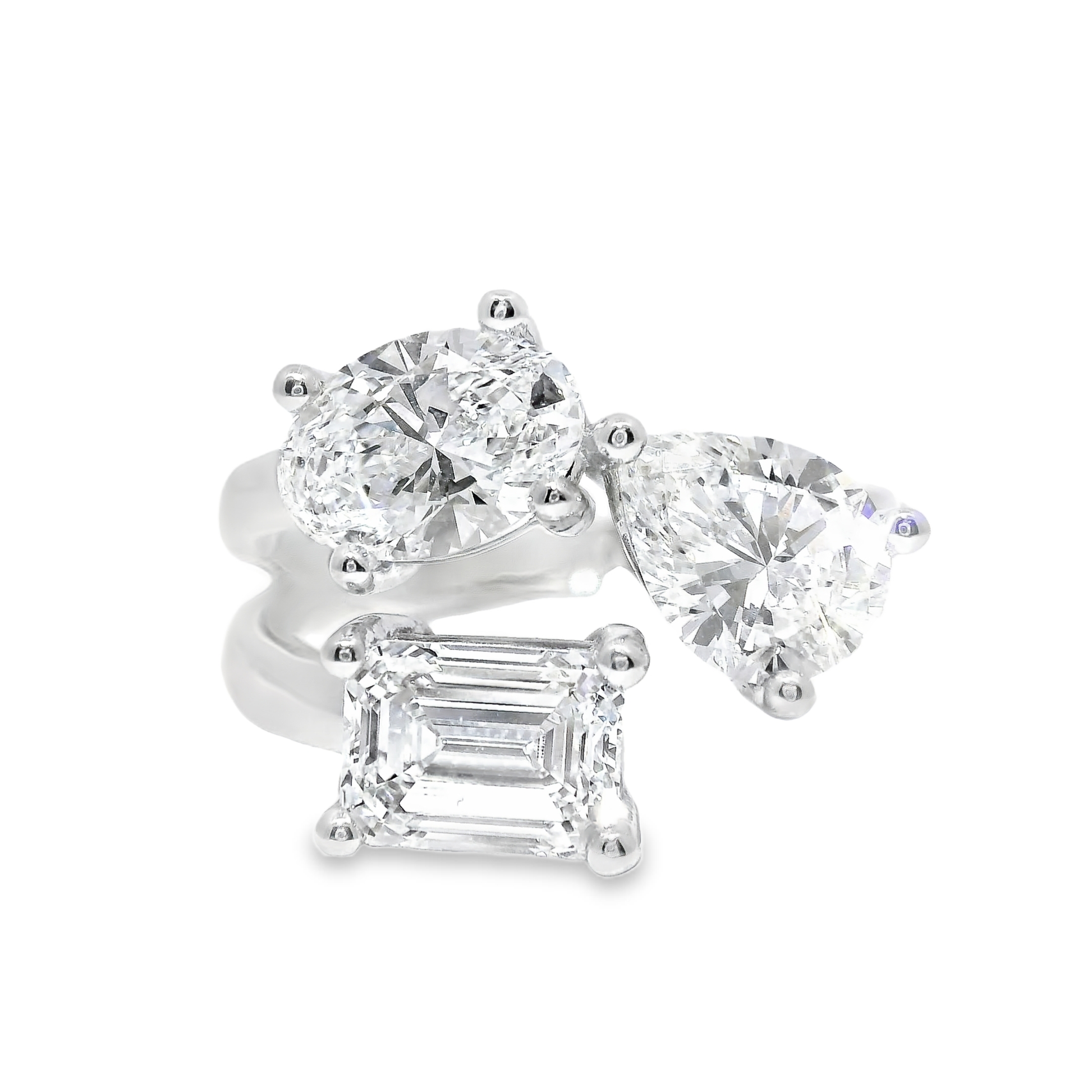 Enhance your style with the stunning 3.38CT Pear Oval & Emerald Cut Lab Diamond Ring. Crafted in 14k White Gold, this exquisite ring features a unique and eye-catching blend of pear, oval, and emerald cut lab diamonds totaling 3.38CT. Add a touch of elegance and sophistication to any outfit with this one-of-a-kind piece.
