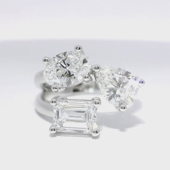 3.38CT Pear Oval & Emerald Cut Lab Diamond Ring 14k White Gold