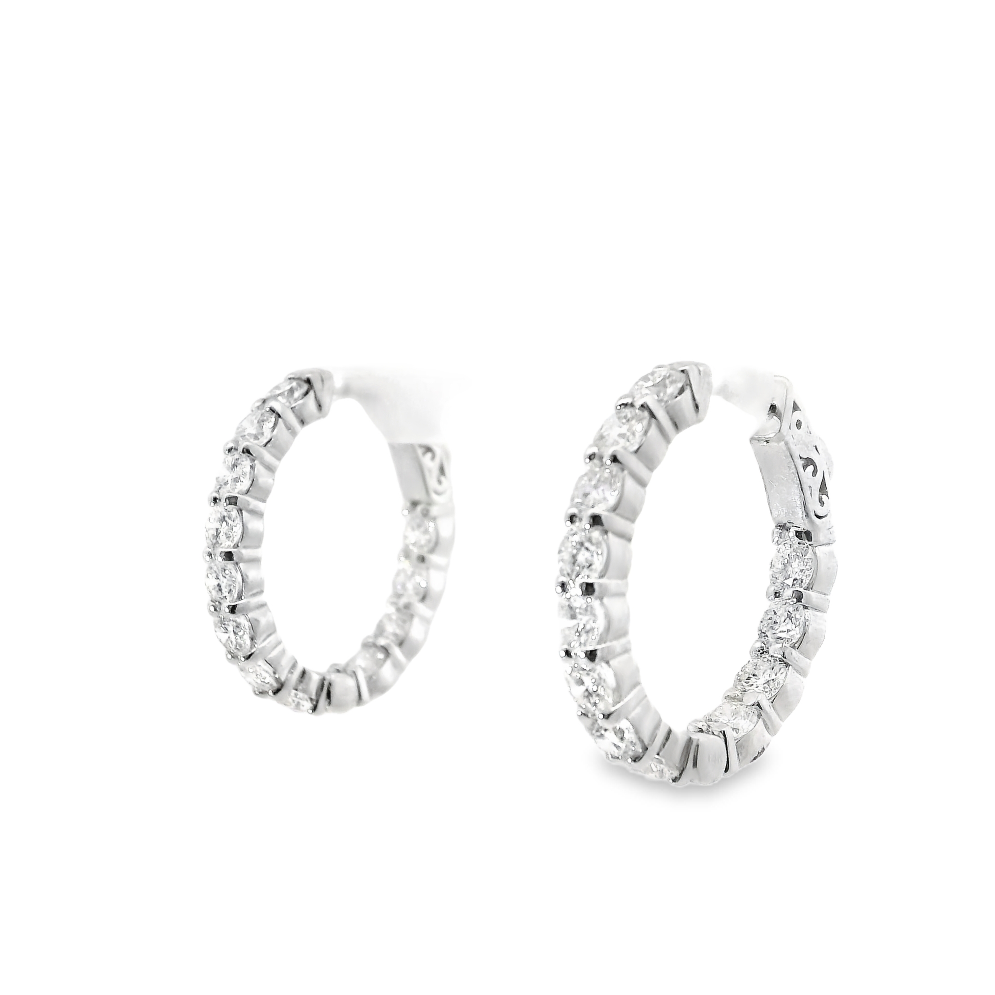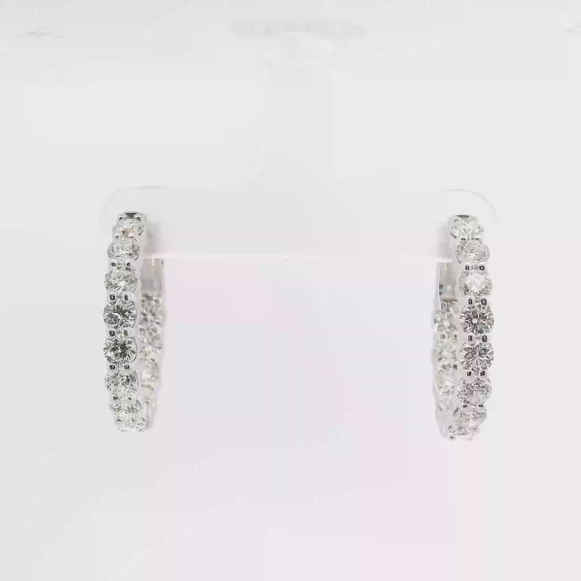 Elevate your elegance with these 3.87-carat diamond hoop earrings crafted in 14k white gold. Expertly designed, they offer a brilliant sparkle and timeless style, perfect for both everyday wear and special occasions. The secure hoop design ensures comfort and durability, making these earrings a refined addition to any jewelry collection.