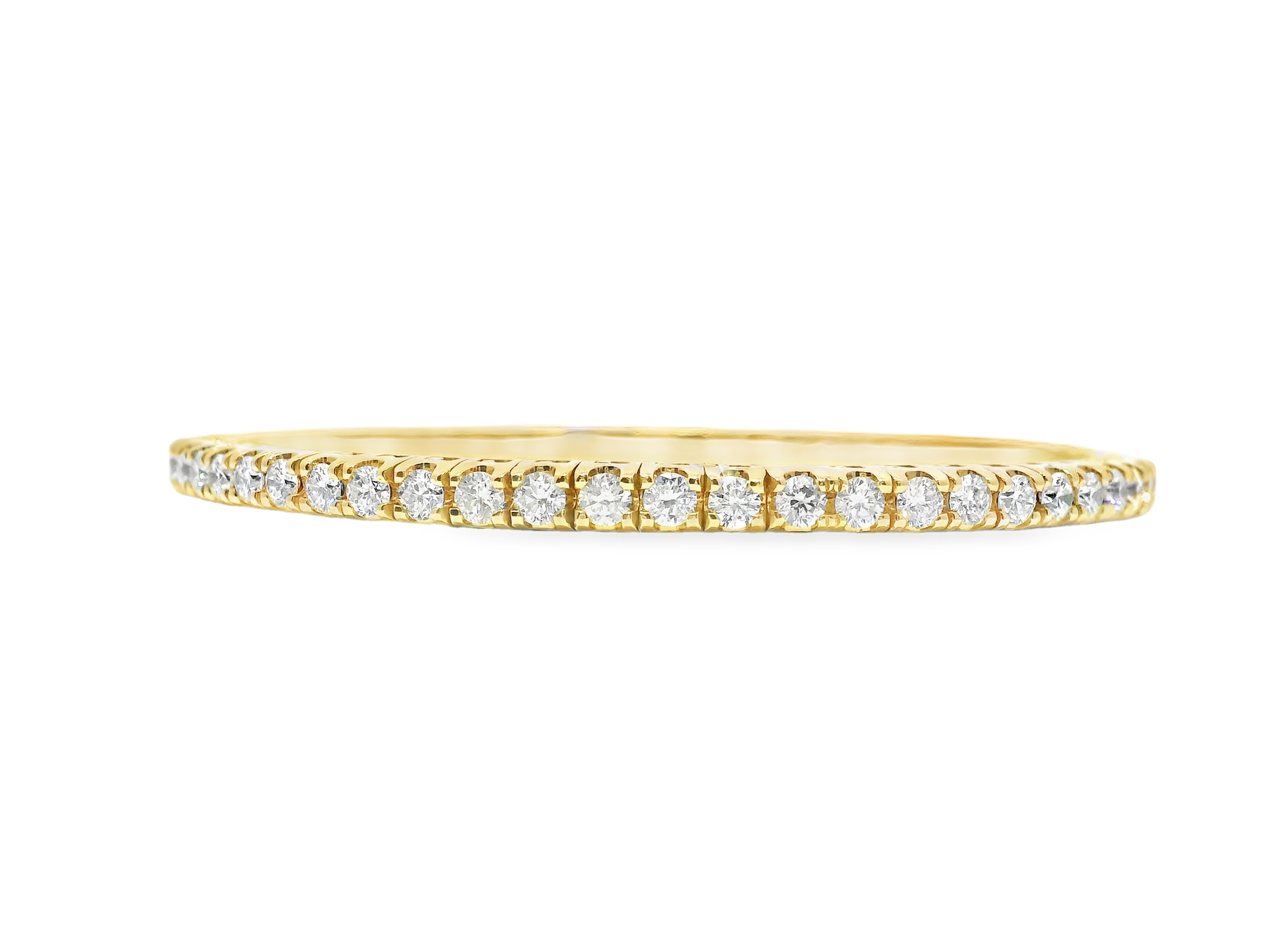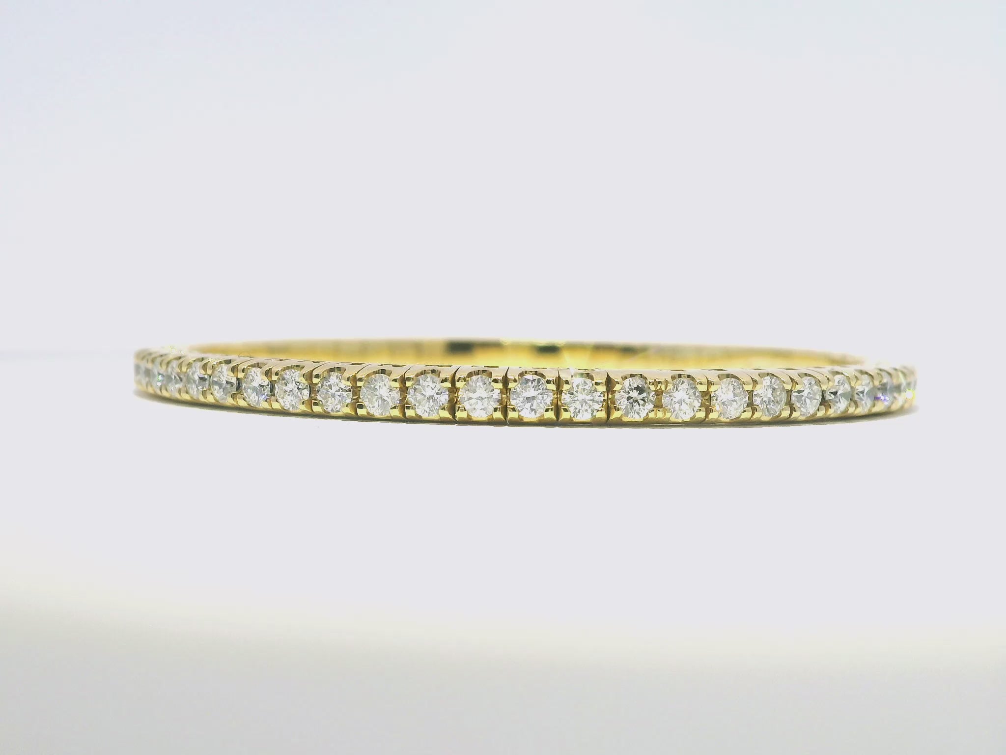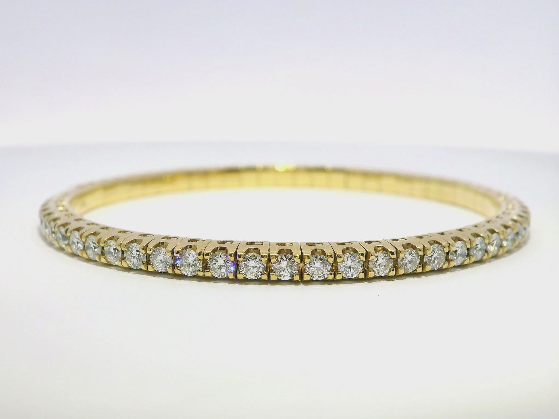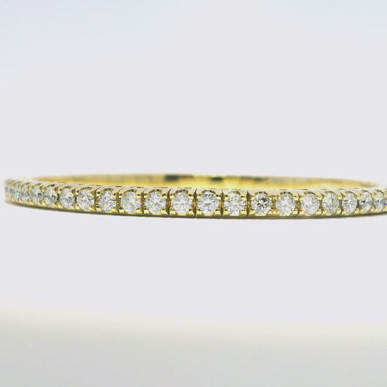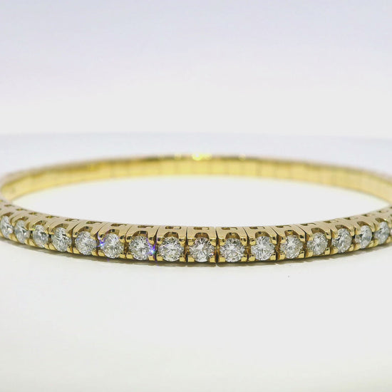 This 18k yellow gold bangle boasts an impressive 3.90 carats of sparkling diamonds. The stretch design allows for a comfortable and secure fit, making it a stunning addition to any jewelry collection. Elevate your style with this luxurious and expertly crafted piece.