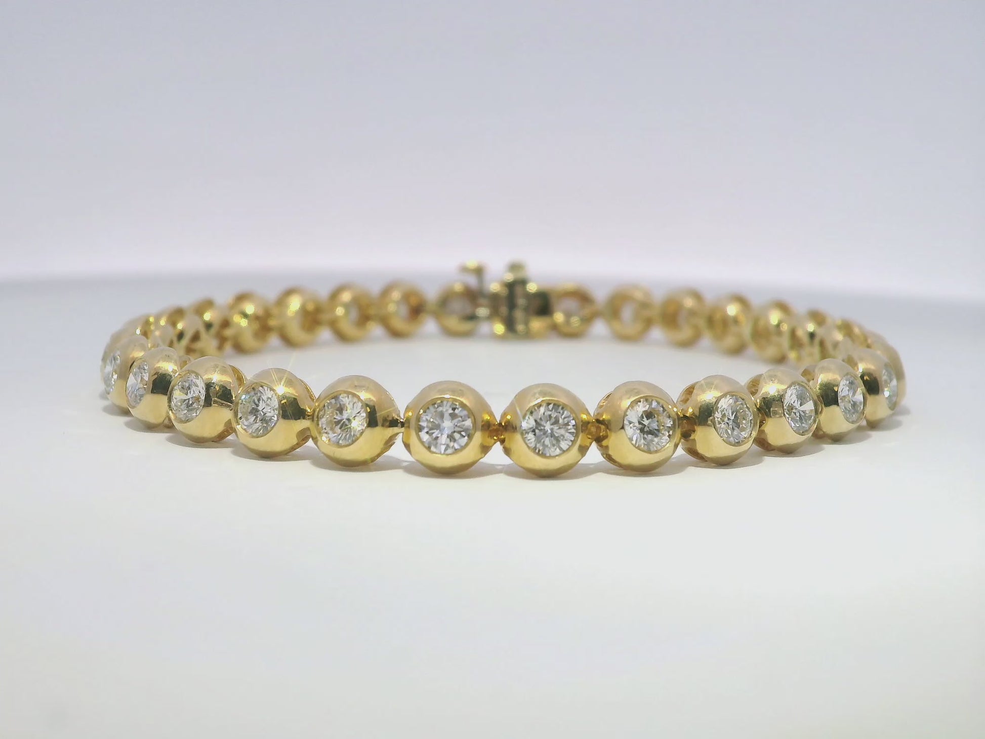 This 3.93CT Lab Diamond Bracelet boasts a luxurious shine with its 14k Yellow Gold setting. Designed with expert craftsmanship, this bracelet offers a stunning 3.93 carats of lab-grown diamonds that are both beautiful and ethical. Perfect for any occasion, this bracelet is sure to make a statement and elevate any outfit.