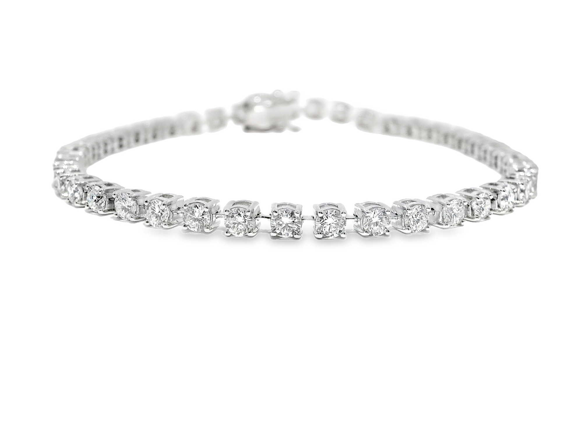Expertly crafted with 4.05 carats of sparkling diamonds, this luxurious 14k white gold bracelet is the perfect accessory to elevate any outfit. Combining timeless elegance with modern design, this bracelet exudes sophistication and quality. Add a touch of glamour to your wardrobe with this exquisite diamond bracelet.