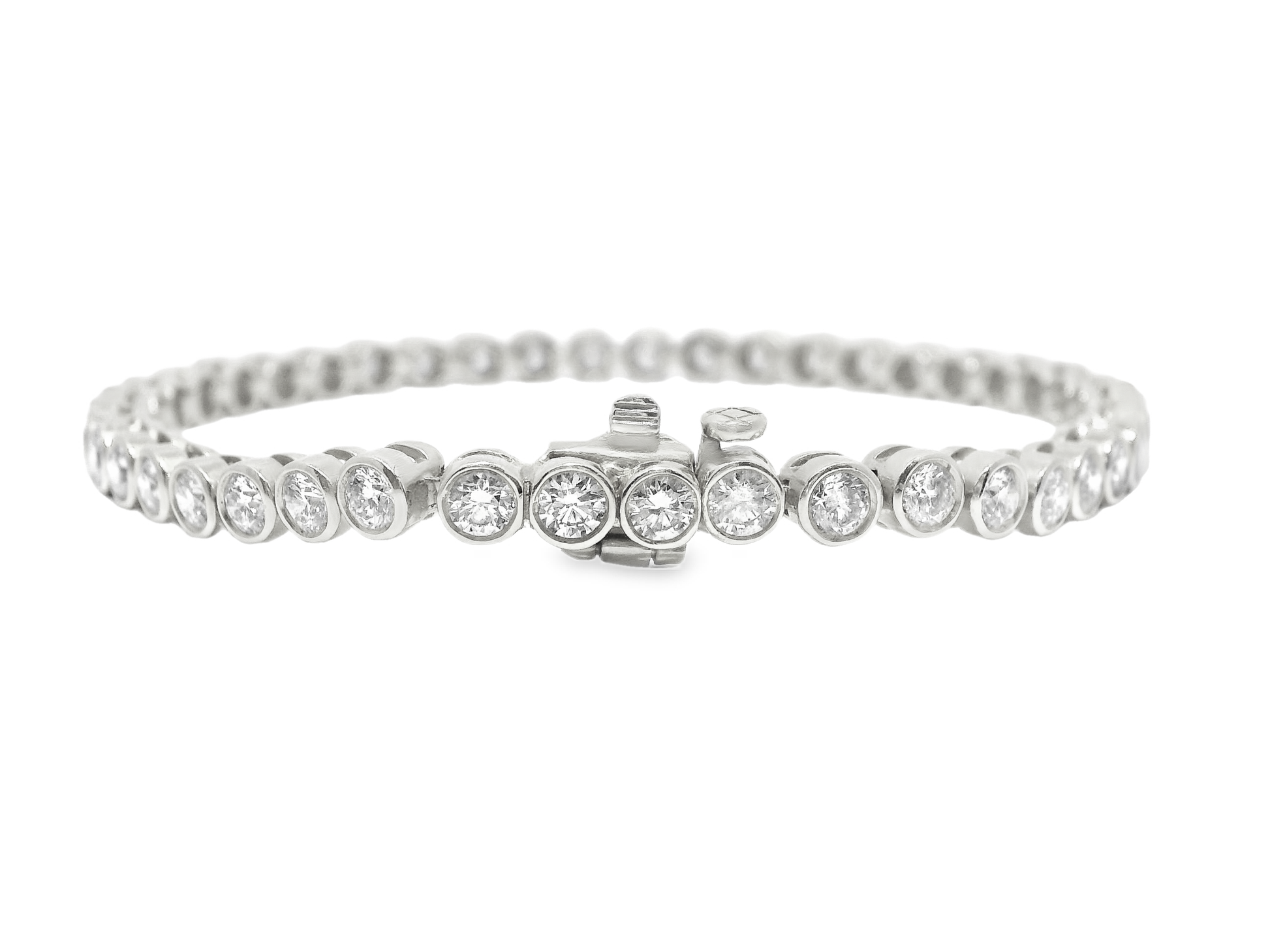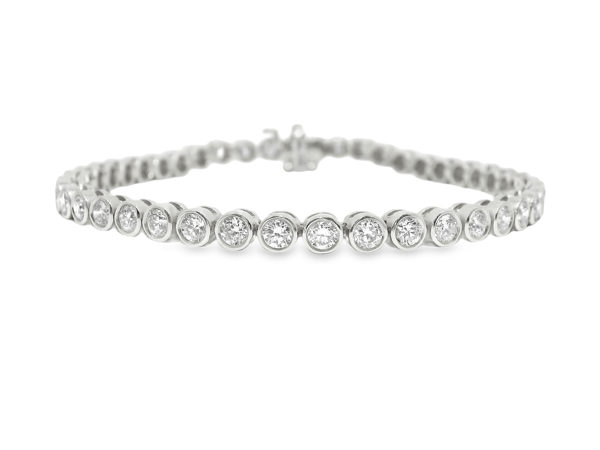 Elevate your fine jewelry collection with this exquisite 4.09CT Diamond Bezel Bracelet crafted in luxurious 14k gold. Each diamond is meticulously set in a sophisticated bezel setting, creating a seamless, contemporary design that showcases the diamonds' brilliance while ensuring secure placement. The substantial 4.09 carat total weight delivers remarkable sparkle and presence on the wrist, making this piece an investment-quality addition suitable for both special occasions and everyday luxury.