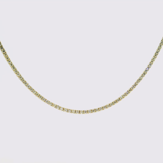 Expertly crafted with 4.30CT round cut diamonds, this tennis necklace in 14K yellow gold is a timeless addition to any jewelry collection. The 4 prong setting showcases the diamonds' brilliance, making it an elegant and sophisticated piece for any occasion. Elevate your style with this stunning necklace.