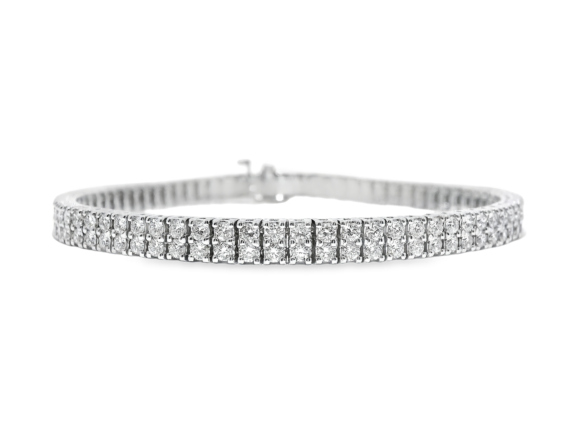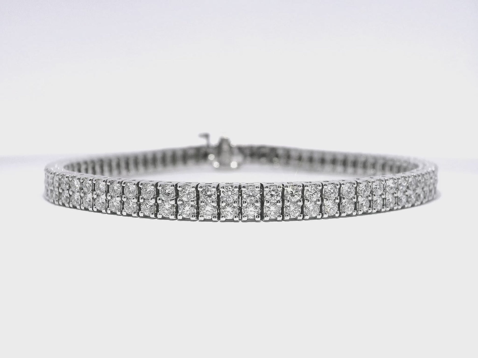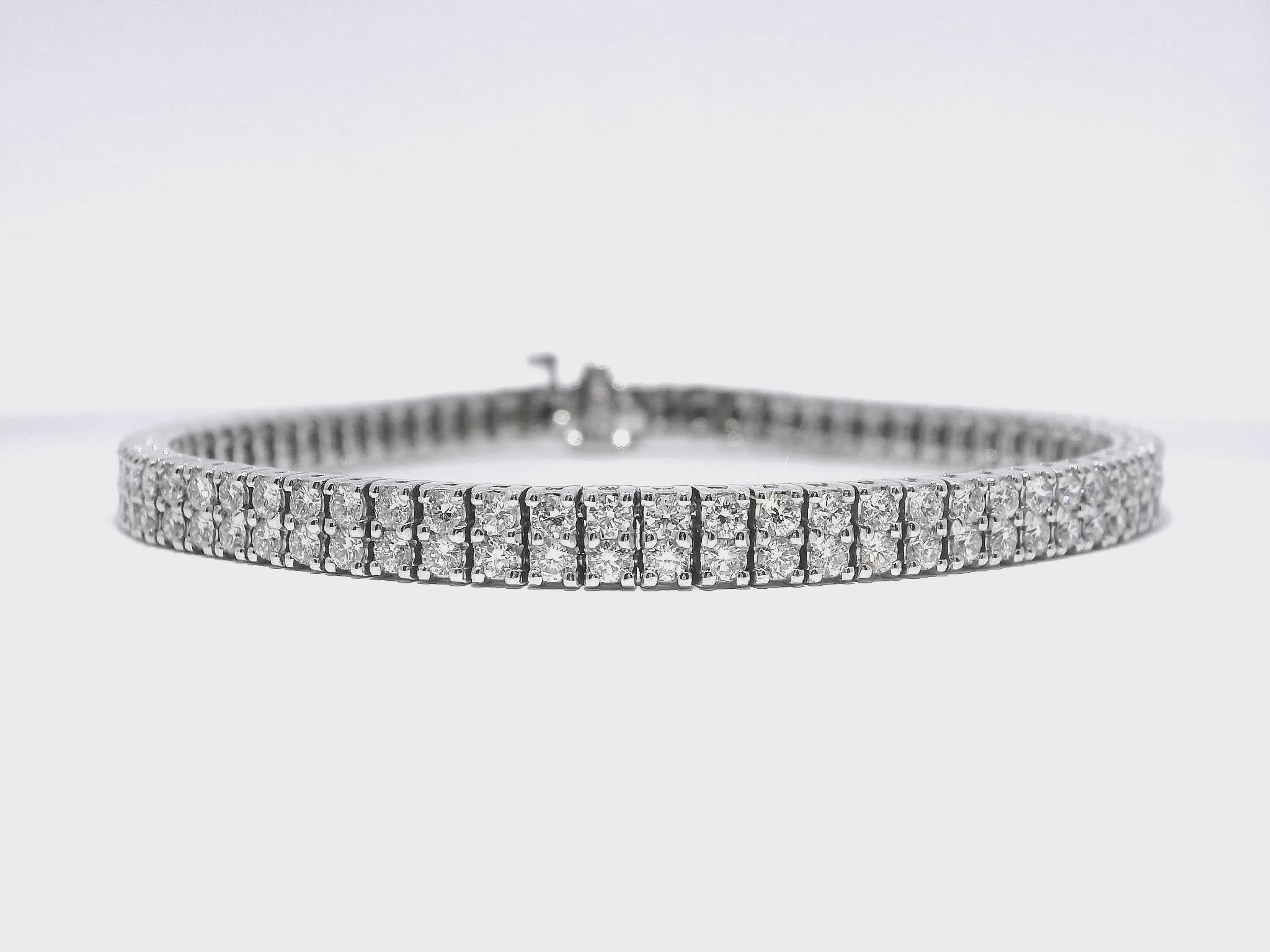 Elevate your fine jewelry collection with this exquisite 4.32CT Diamond 2 Row Tennis Bracelet. Meticulously crafted in premium 14k white gold, this bracelet features a sophisticated double row design that maximizes brilliance and presence