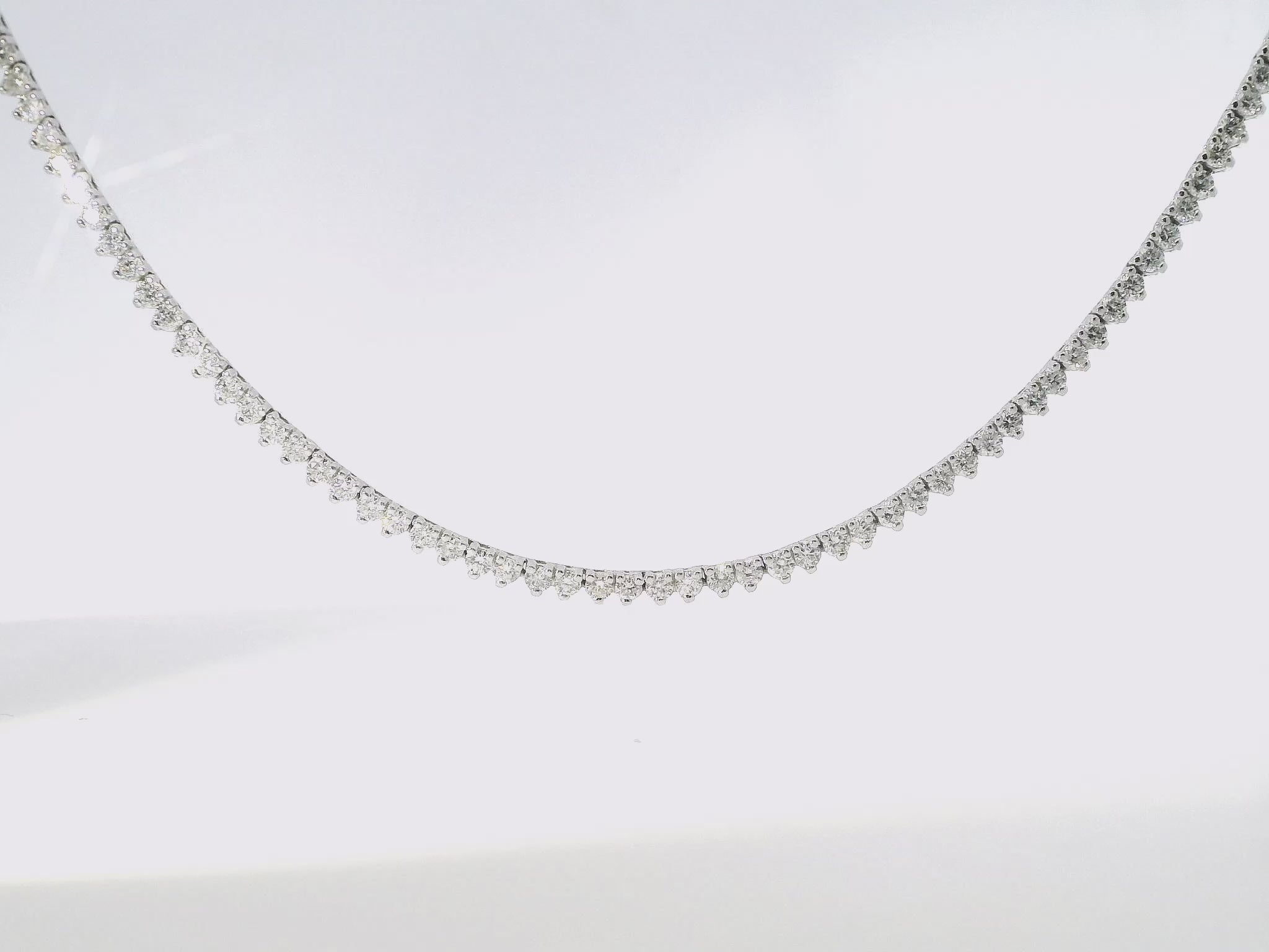 5.08CT Round Cut Diamond 3 Prong Diamond Tennis Necklace 14K White Gold