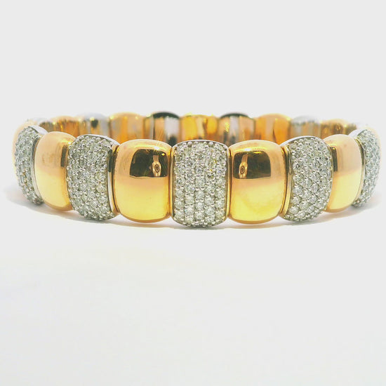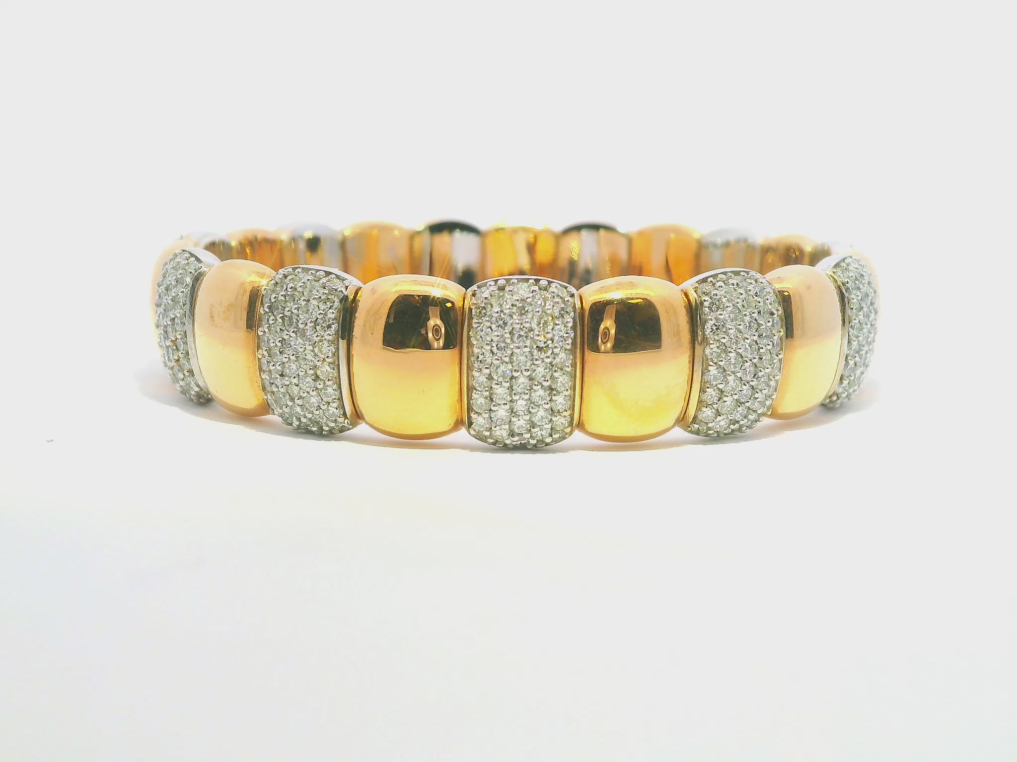 As an industry expert, this 18k rose gold bangle exudes elegance with a stunning 5.10CT diamond. The perfect accessory for any occasion, this bangle adds a touch of luxury and sophistication to any outfit. Expertly crafted with the finest materials, this bangle is sure to be a valuable addition to any jewelry collection.