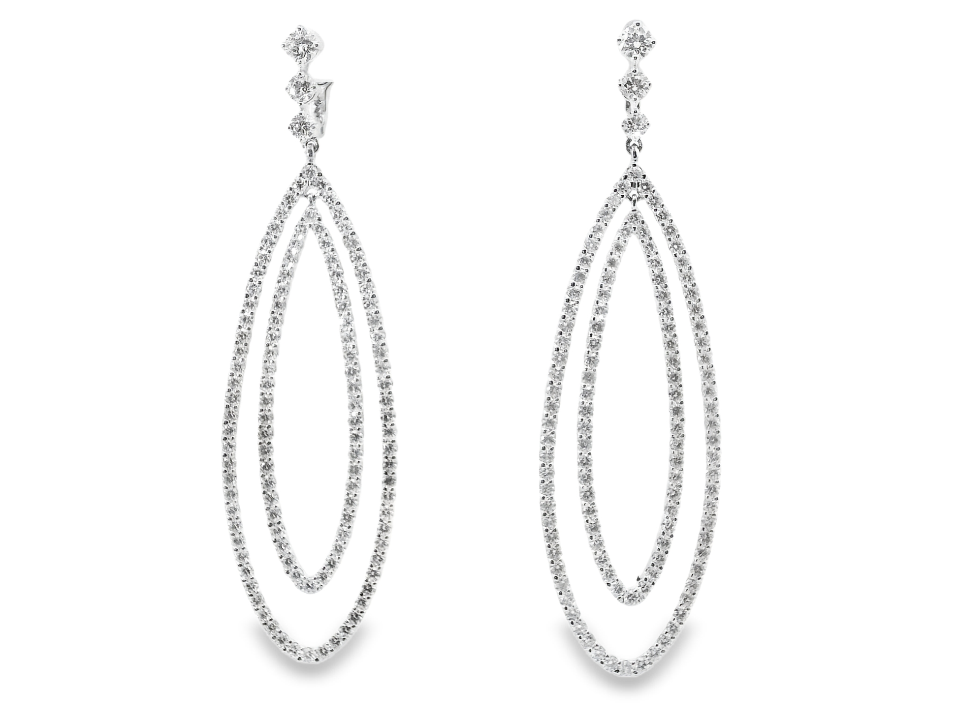 These 5.46-carat diamond earrings are expertly crafted in 14k white gold, offering a timeless elegance and exceptional brilliance. The high-quality diamonds provide remarkable sparkle, while the durable white gold setting ensures lasting beauty and comfort. Perfect for elevating any ensemble with a sophisticated touch.