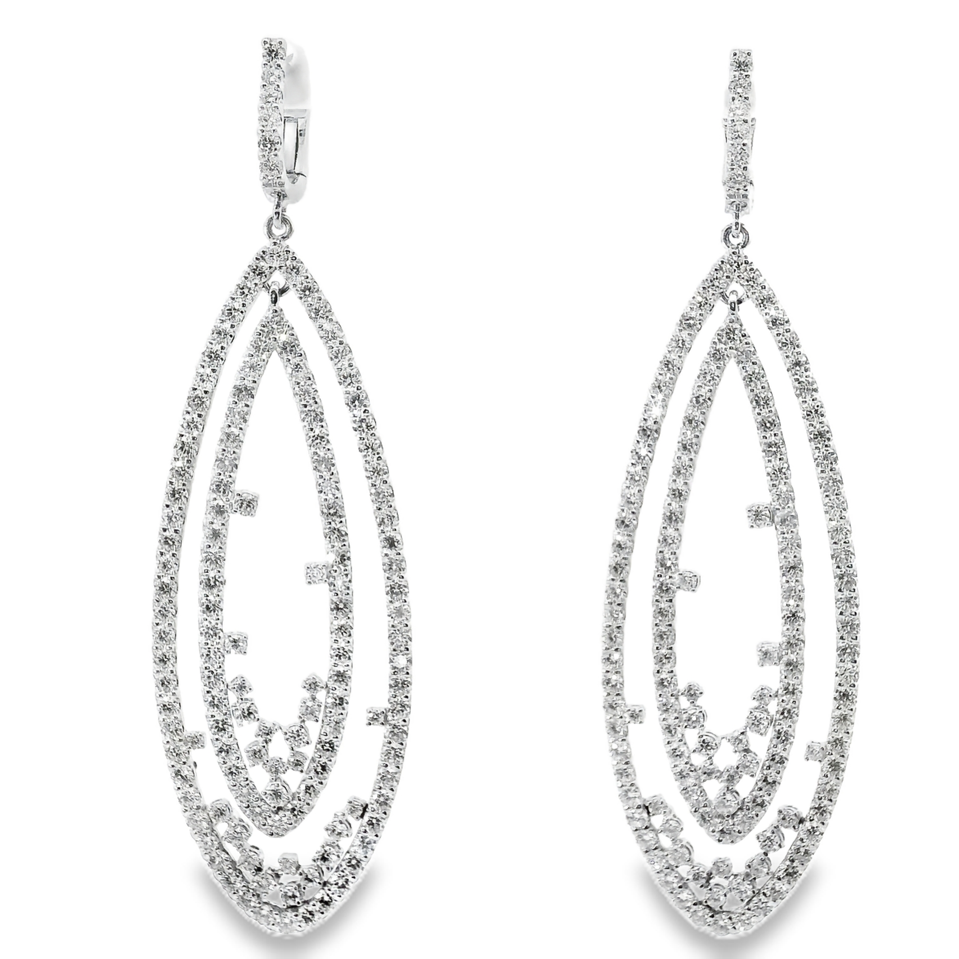 These 6.37-carat diamond earrings, set in 14k white gold, combine exceptional brilliance with timeless elegance. Expertly crafted, they offer a refined sparkle that enhances any ensemble, making them a sophisticated choice for both everyday wear and special occasions. The durable 14k white gold setting ensures lasting beauty and comfort.