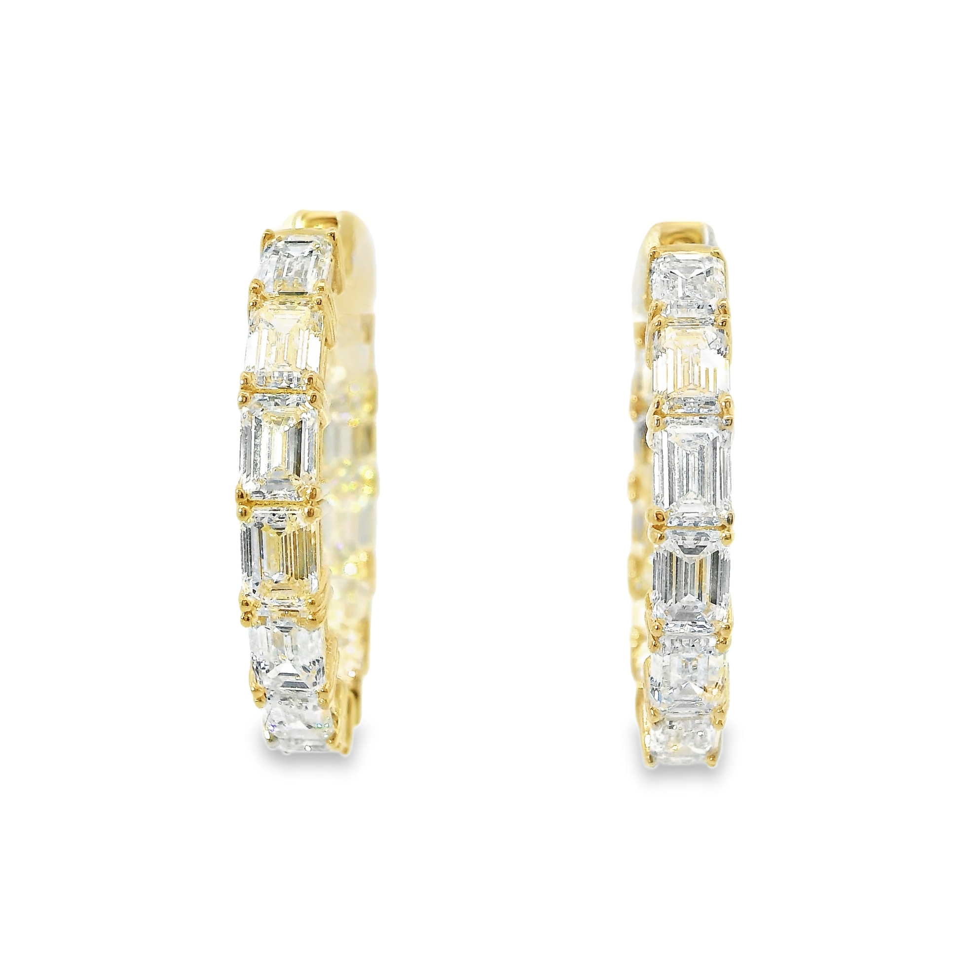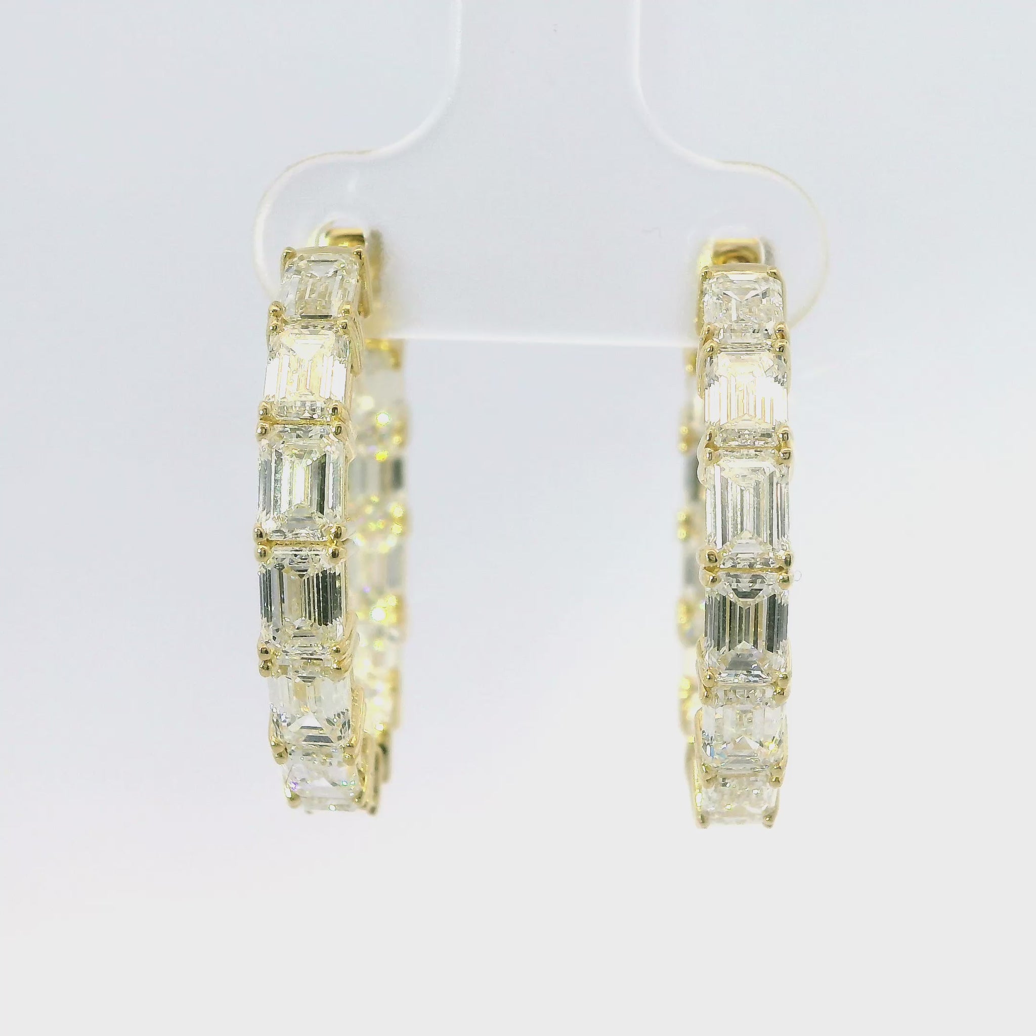 Elevate your jewelry collection with these sophisticated 6.56CT Emerald Cut Lab Diamond Hoop Earrings. Meticulously crafted in premium 14k yellow gold, these earrings showcase the precise geometry and exceptional brilliance of emerald cut lab diamonds. The substantial 6.56 carat weight ensures a captivating presence, while the lab-grown diamonds offer ethical luxury without compromising on quality or visual impact.