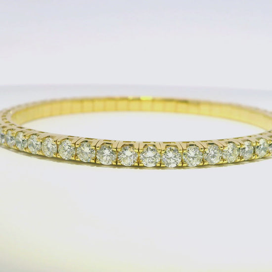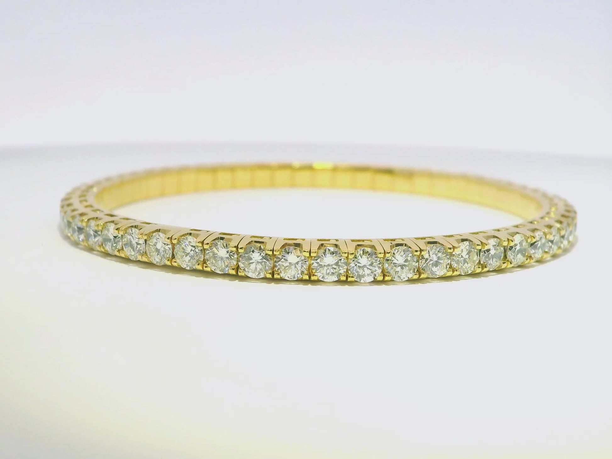 Expertly crafted with 7.26 carats of shimmering diamonds and 18k yellow gold, this stretch bangle is the ultimate in luxury and elegance. Its flexible design allows for a comfortable and secure fit, making it the perfect accessory for any occasion. Experience the beauty and brilliance of this stunning piece.