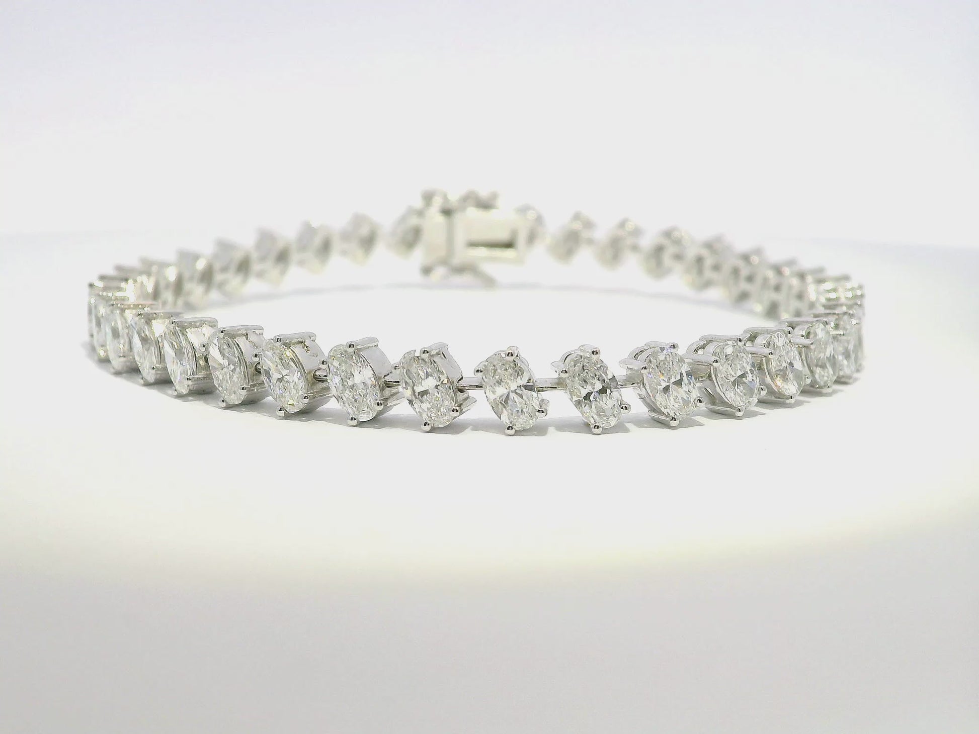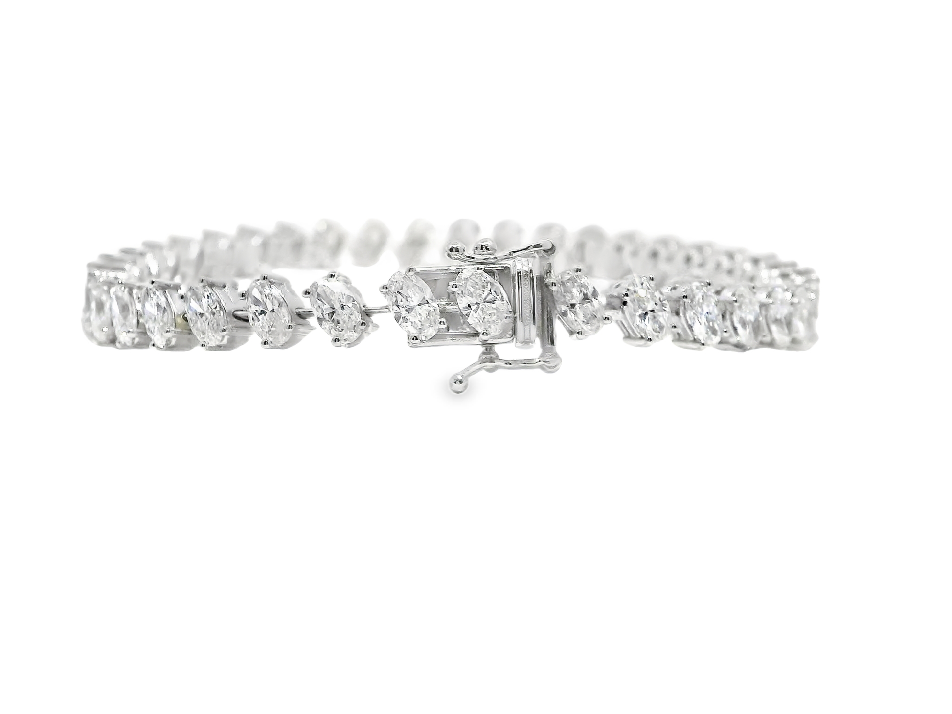 Expertly crafted with 14k white gold, this dazzling lab diamond bracelet features a stunning 7.47 carats of sparkling diamonds. With a classic and elegant design, this bracelet is perfect for any occasion and will add a touch of luxury to any outfit. A must-have for any jewelry collection.