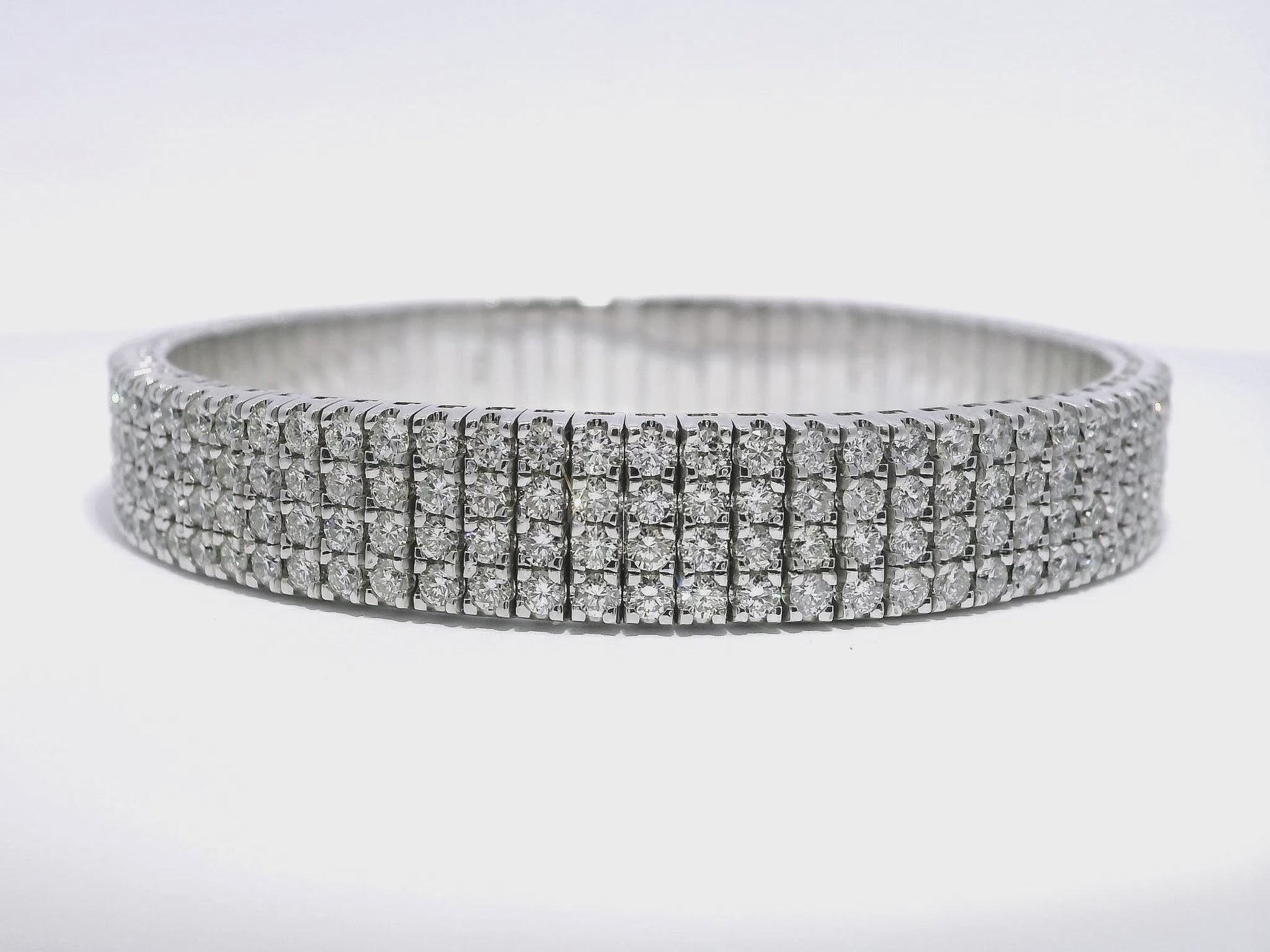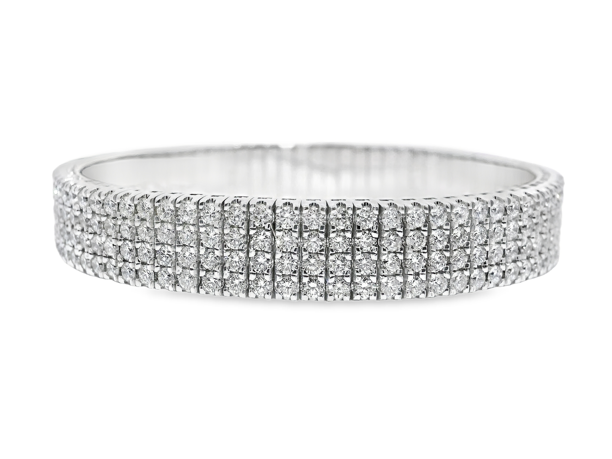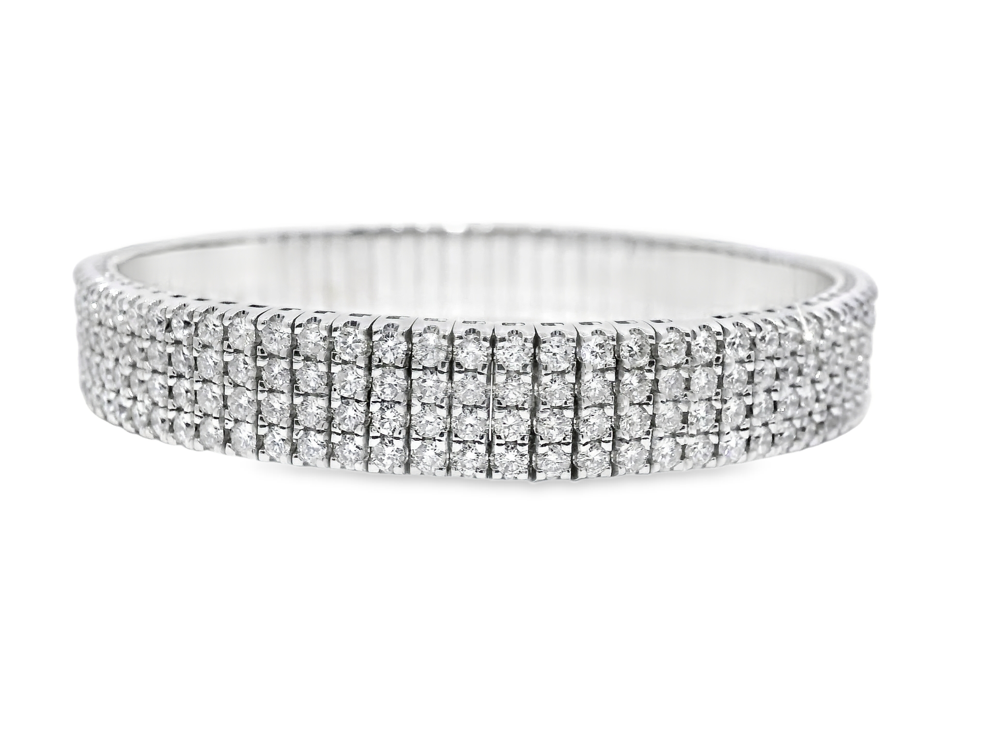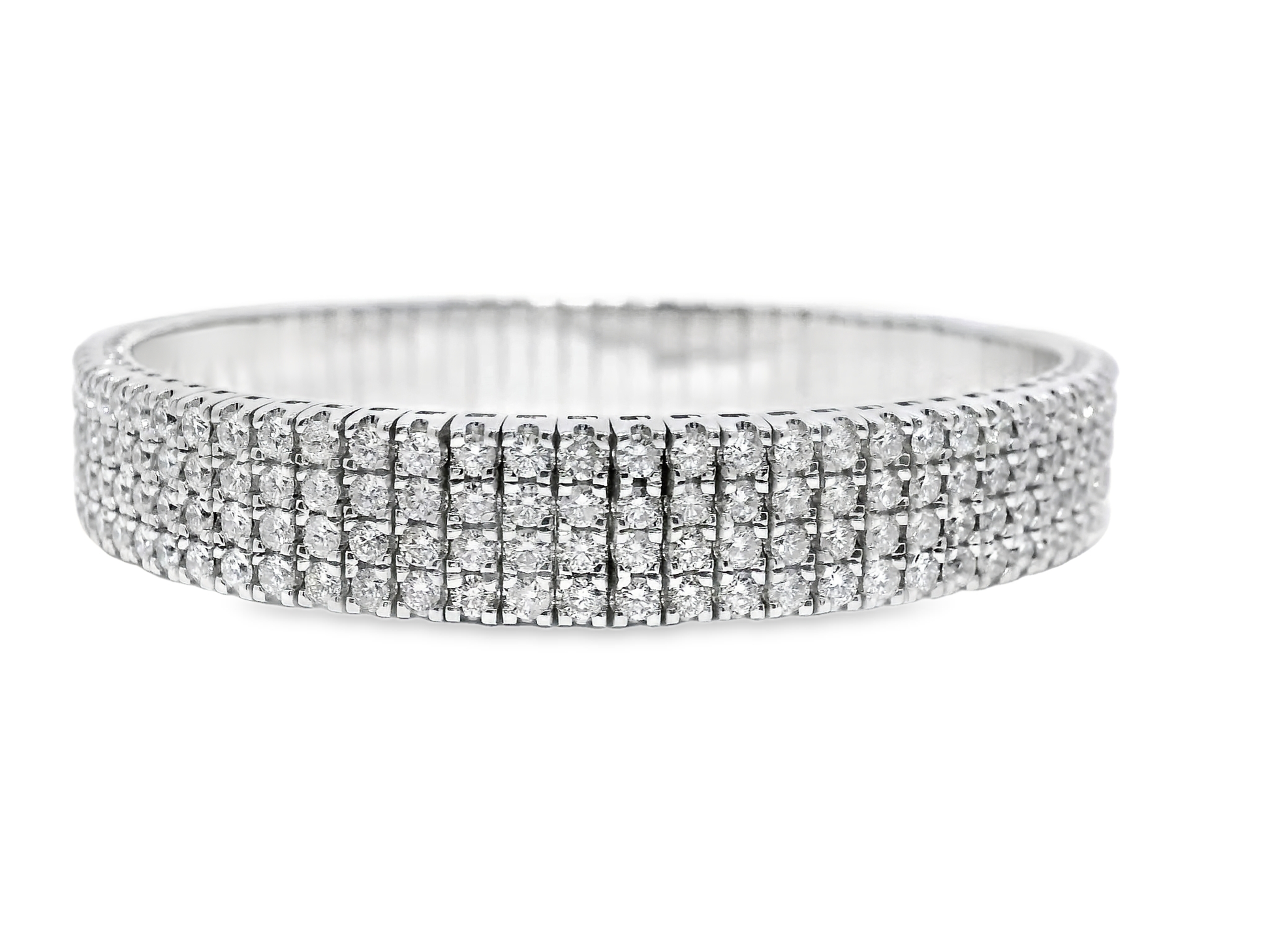 This 8.51CT diamond bangle is expertly crafted from 18k white gold, showcasing stunning diamonds totaling 8.51CT. The perfect accessory for any formal occasion, this bangle shines with elegance and sophistication. Elevate your style and make a statement with this glamorous piece.