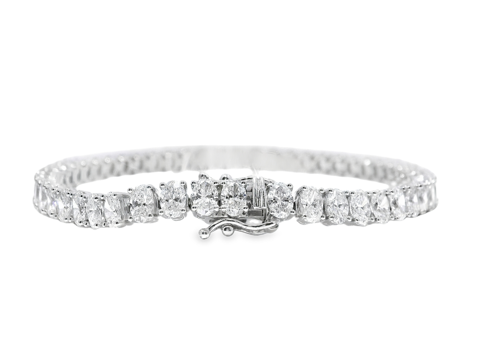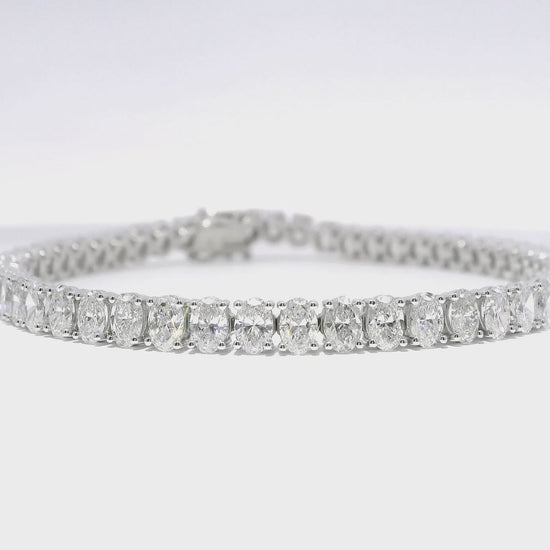 Expertly crafted with 14k white gold and featuring a stunning 8.81CT oval lab diamond, this bracelet is a true masterpiece. The lab diamond provides the perfect combination of brilliance and durability, making it a lasting investment piece for any jewelry collection. Elevate your style with this elegant and timeless bracelet.