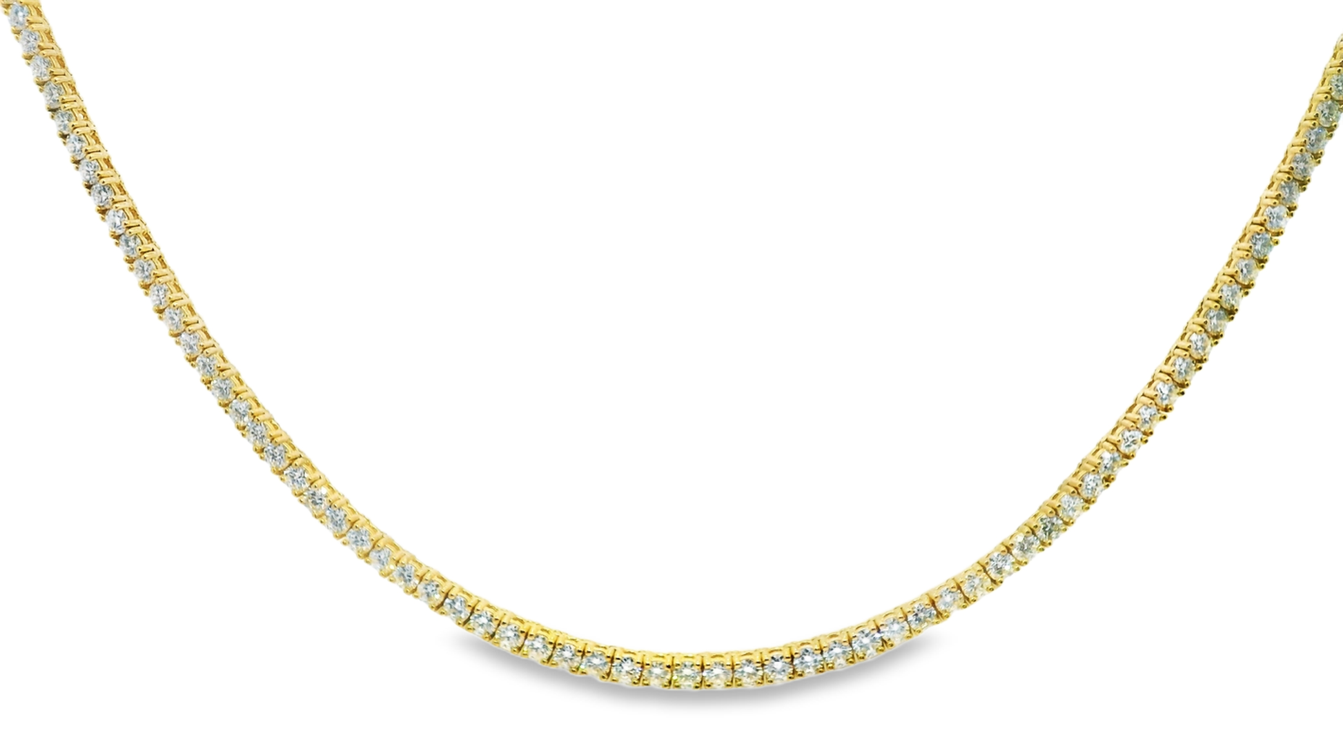 9.39CT Diamond 4 Prong Tennis 18k Yellow Gold Necklace