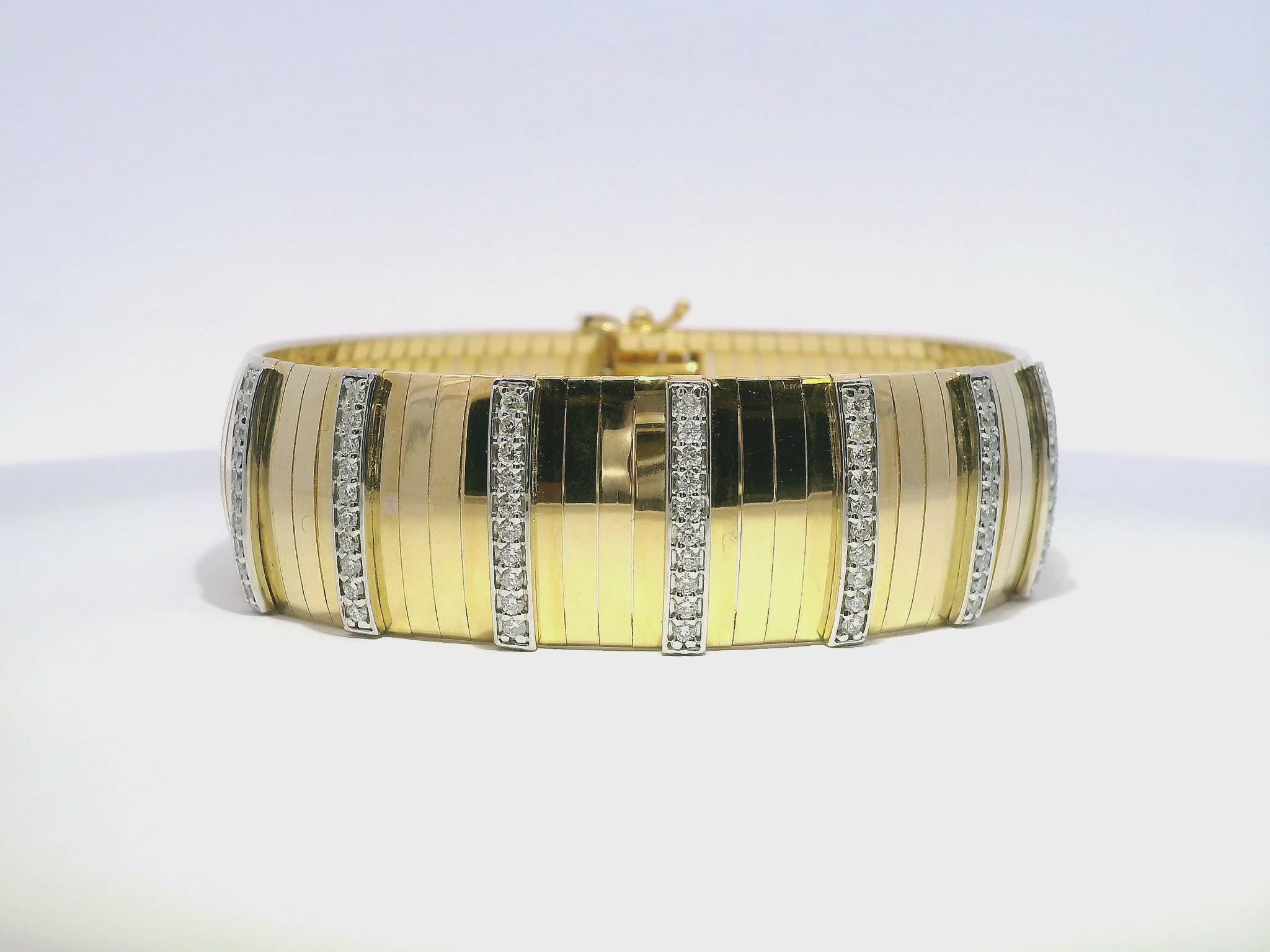 Elevate your jewelry collection with this exquisite 1.00CT Diamond Bangle crafted in luxurious 14k Yellow Gold. This sophisticated piece features meticulously set diamonds totaling one full carat, creating a brilliant display of light and elegance. The classic yellow gold setting enhances the diamonds' natural fire while providing durability and timeless appeal for everyday wear or special occasions.
