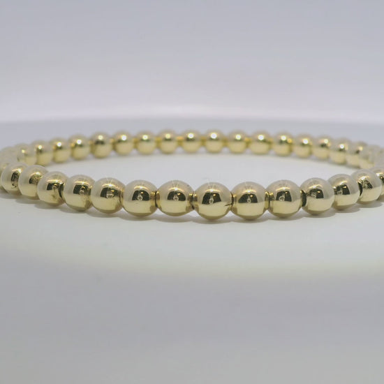 Experience sophistication and elegance with our Plain Gold Beads Stretch Bangle. Made from 14k gold, this stretch bangle features simple and timeless plain gold beads. Perfect for layering or wearing alone, this bangle is a must-have for any wardrobe. Style and quality that will last.