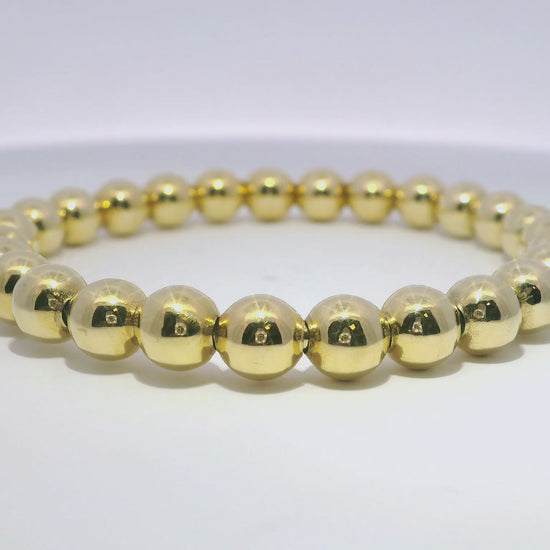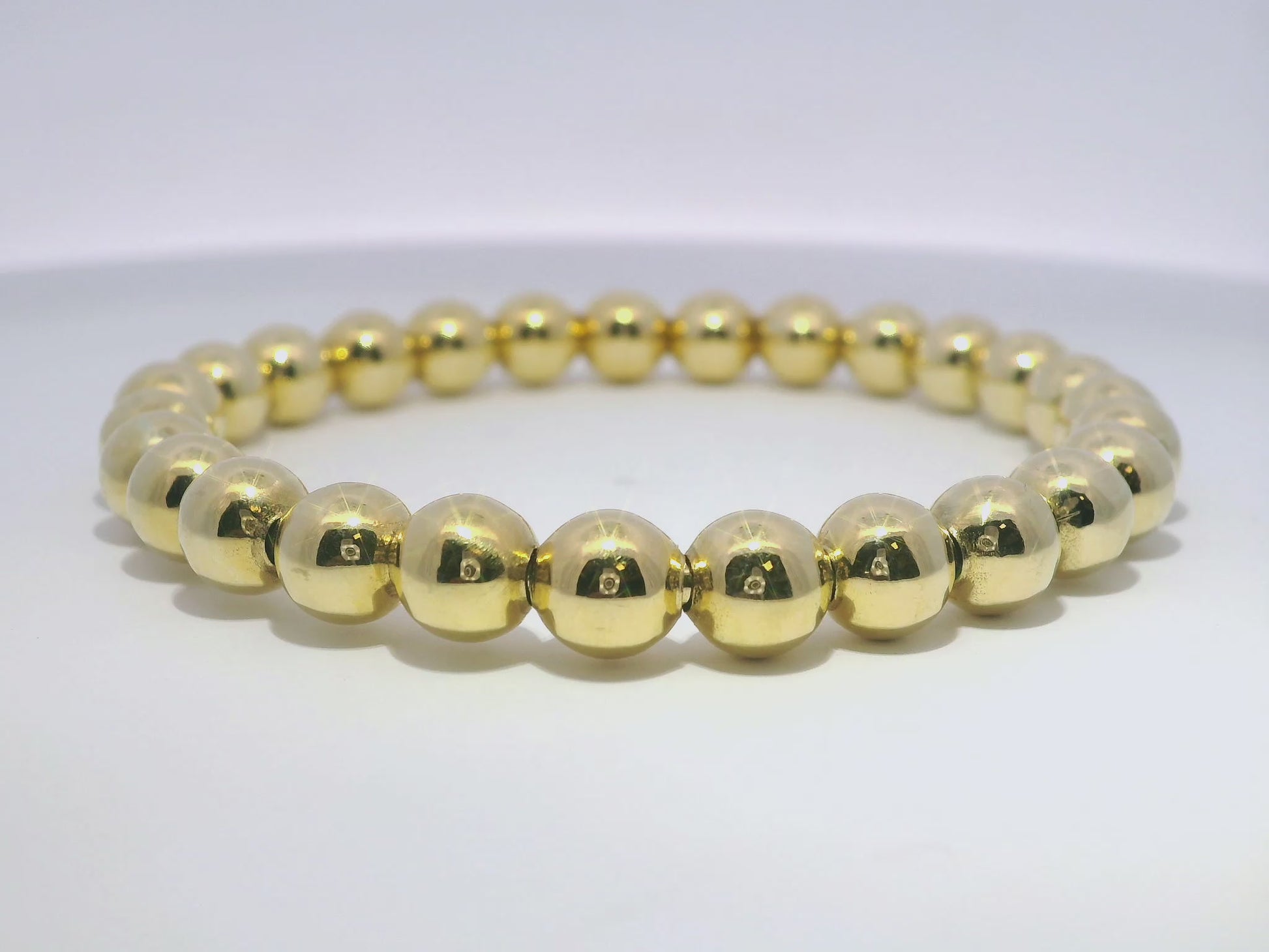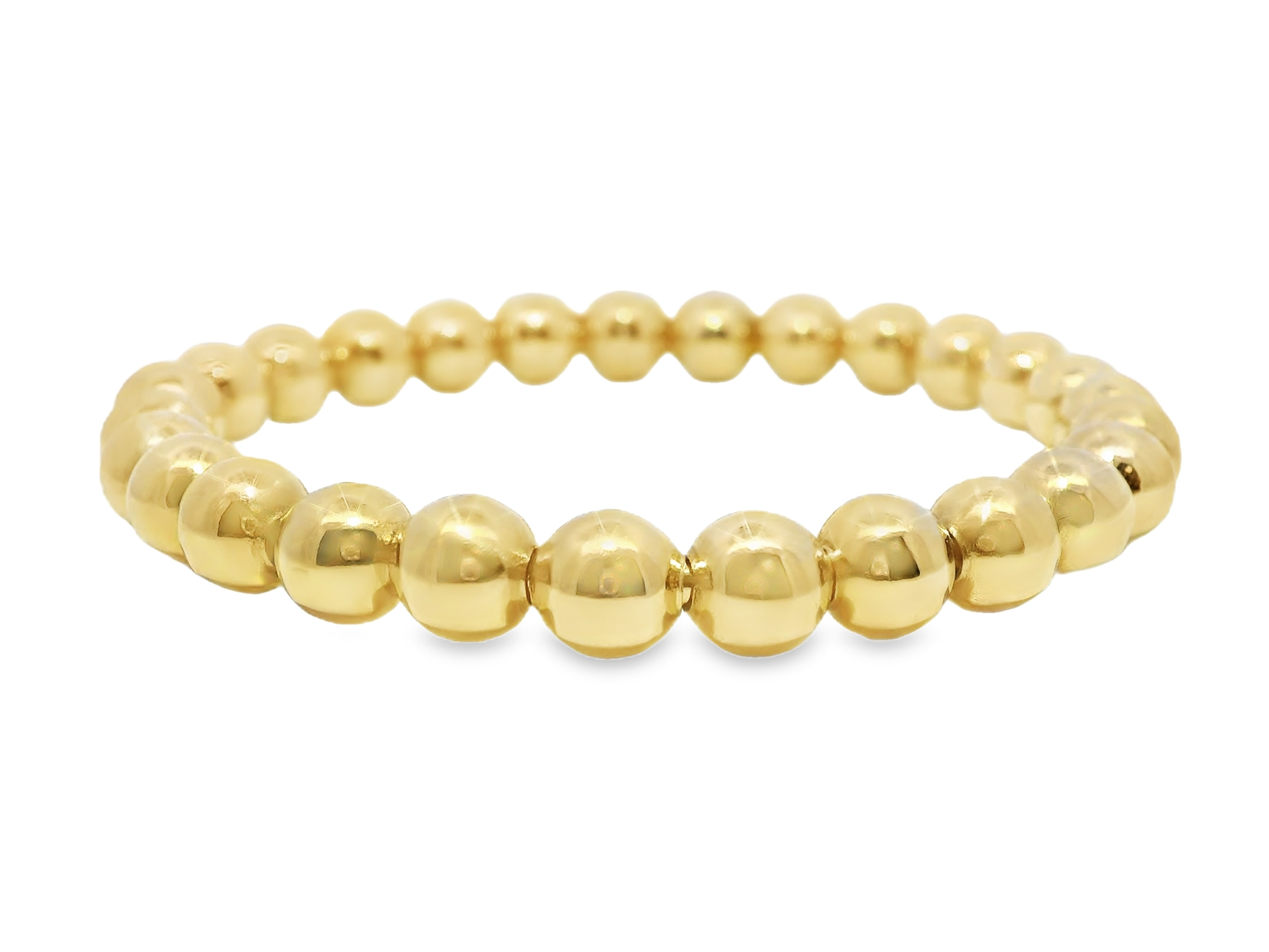 This 14k yellow gold beaded stretch bangle is a classic and versatile addition to any jewelry collection. The simple design allows for easy pairing with a variety of outfits, making it a perfect accessory for any occasion. Made with high-quality materials, this bangle offers durability and timeless elegance.