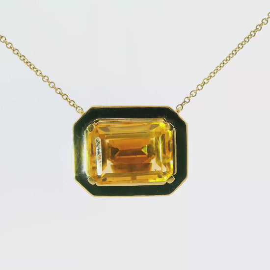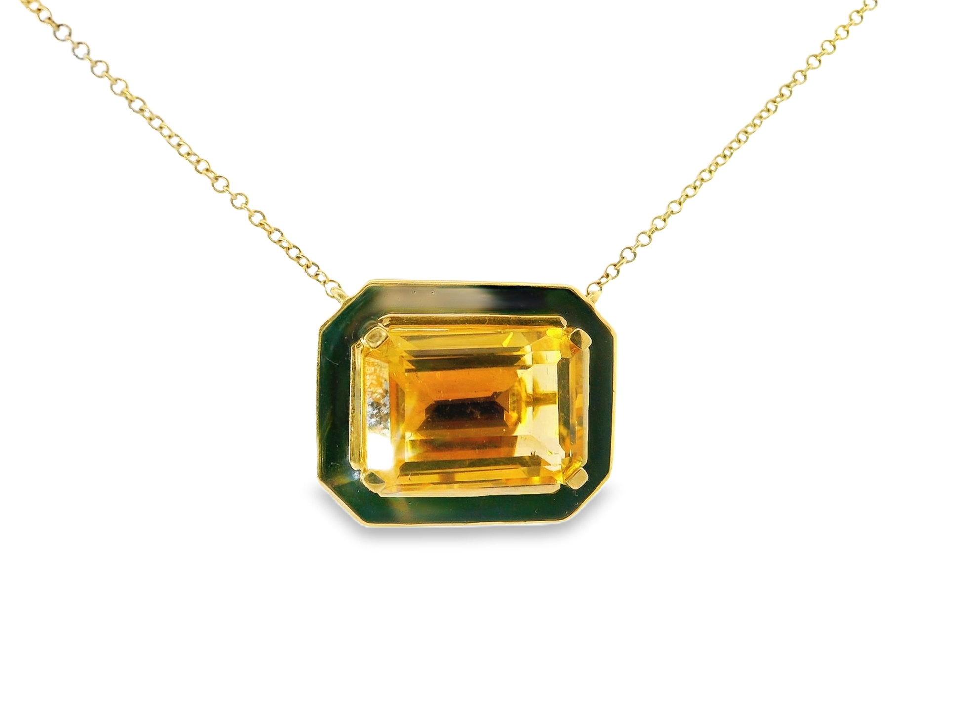 This Citrine Enamel Pendant is crafted in 14k yellow gold, combining the warm glow of gold with the vibrant, sunny hues of citrine. The enamel detailing enhances the pendant’s depth and color contrast, making it a refined accessory that elevates any ensemble. Its expert craftsmanship ensures durability and timeless elegance, perfect for those seeking a sophisticated yet distinctive piece.